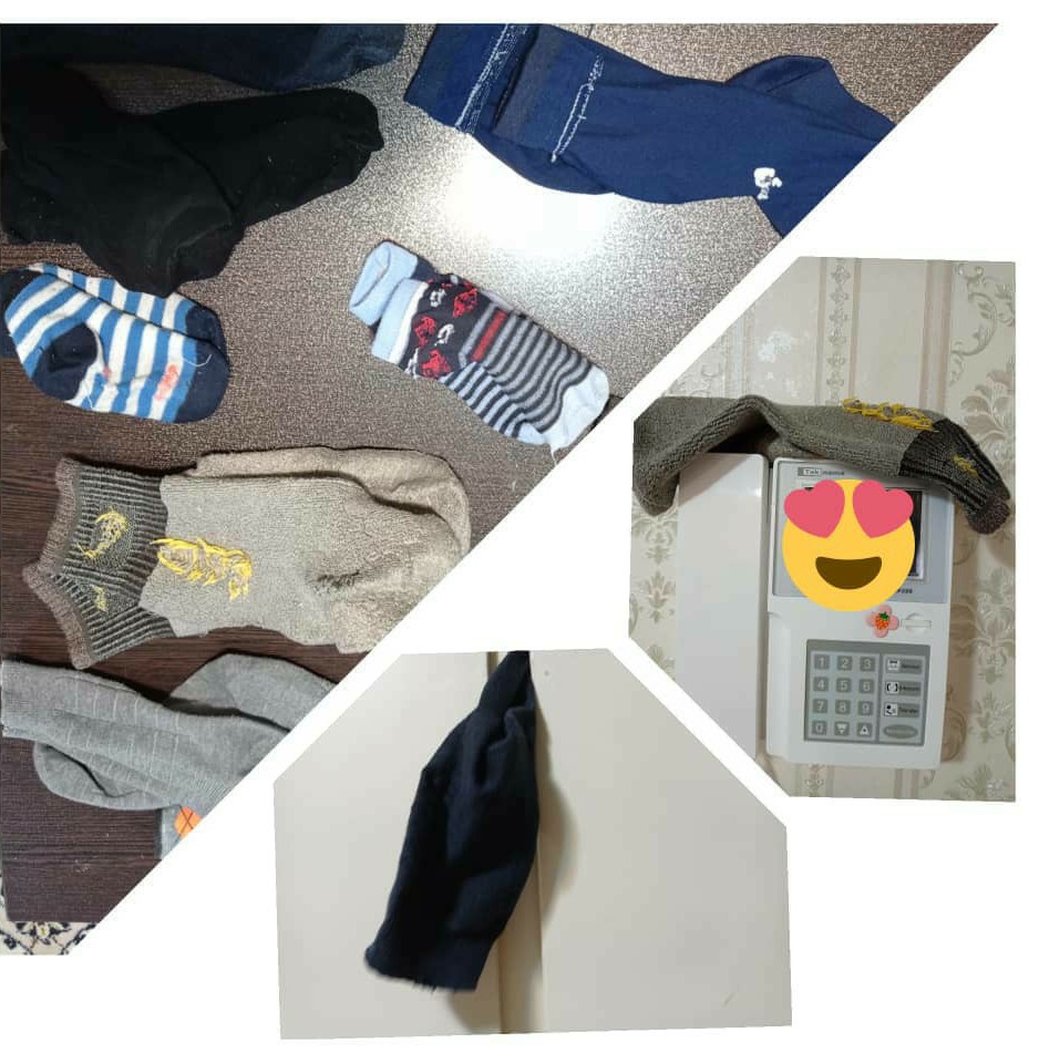 به نام خدا #سه_شنبه #ایده_ازاد رختامون رو بند رخت مونده🧦👕👖 و مهمون داره میاد😲 منم یه لنگه از هر جورابی رو گذاشتم رو میز و لنگه دیگه جوراب ها رو جاهای مختلف خونه قایم کردم، پسر طلا باید میگشت پیدا میکرد و بعد هم اونا رو تو هم گوله بکنه تا بریم مرحله بعد یعنی پرتاب توپ🤪