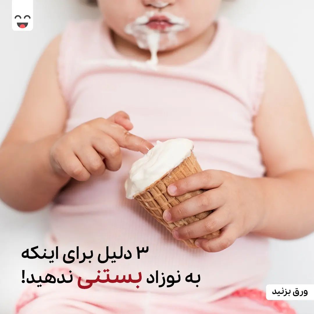 این روز ها که هوا گرم شده خوردن بستنی هم بیشتر میچسبه!🍦 حالا ممکنه یه سری مادر پدرا حین بستنی خوردن، مقداری هم به نوزاد زیر یک سالشون بدن تا اون هم بی نصیب نمونه و چه بسا فکر کنن که برای کودک خاصیت هم داره 😖 اما باید بدونین که یک سال اولیه زندگی کودک دوره بسیار مهمیه و باید مواد مغذی سالم رو در رژیم غذایی کودک قرار بدیم، بنابراین توی این دوره بستنی دادن به کودک به دلایل زیر ممنوعه : 🚫 ⚠️ 1. مواد نگهدارنده : تقریباً تمام بستنی های موجود توی بازار حاوی مواد نگهدارنده، چربی، قند ،مواد مصنوعی و رنگ خوراکی هستن. ⚠ ️2. شیر کامل: بستنی از شیر تهیه می شه و کودک ممکنه به پروتئین شیر و خامه اون حساسیت داشته باشه. اگه کودک فقط از شیر مادر تغذیه میکنه، در معرض شیر گاو قرار میگیره و دچار عدم تحمل لاکتوز میشه. ⚠️ 3. مشکلات هضم : ممکنه شیر و مواد موجود در بستنی سبب مشکلات هضم برای کودک بشه. بستنی ممکنه به ایجاد گاز معده ، درد مزمن در معده و مشکلات قولنج منجر بشه. بامانو نگران سلامت کودکان شماعه، میتونین کلی مطلب مفید دیگه درباره سلامت کودک در بامانو بخونین. تا یادت نرفته همین الان بامانو رو نصب کن 😉 #بامانو #کودک #خانواده #فرزند #نوزاد #بچه #بستنی #شیر #لبنیات #قولنج #قولنج_کودک #حساسیت #شیر #شیر_مادر #سلامتی_کودک #نینی #پزشکی #سلامت