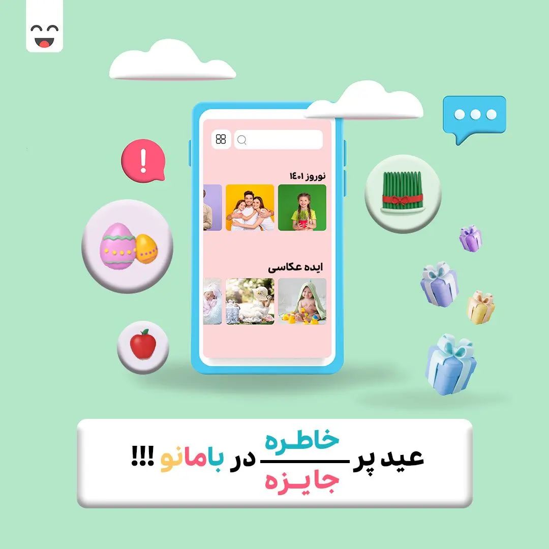 🎁🎉 ســــلام به بامانویی ها، 🔅 برای یه عیــد پر خاطــره/جــایزه آماده این؟🔅 با ما همراه باشین که قراره امسال تو بامانو کلی خاطرات شاد با کودکمون بسازیم و در کنارش یه مسابقه جذاب و پر جایزه هم داریم پس همین حالا: اگه اپلیکیشن بامانو رو نداری... نصبش کن، ساعتتو کوک کن، دوستات رو خبر کن، که یه موقع جا نمونین! 😉 #بامانو #جایزه #عید #عیدانه #عیدی #هدیه #مسابقه #عید_پر_جایزه #مسابقه #قرعه_کشی #آلبوم #آلبوم_کودک