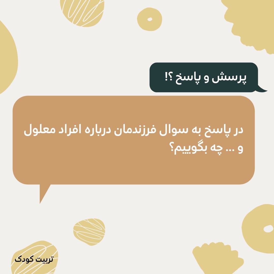 . برای فرزندان ۷ سال اول لازم نیست خیلی مطلب را باز کرد و بایستی با توضیحات کوتاهی مانند اینکه او همین طور به دنیا آمده یا اینکه اون با اینکه #معلول است اما کار های زیادی را می تواند انجام دهد و آدم قوی ای است، جواب داده و زود عبور کنیم. البته باید دید واقعا چقدر این سوال برای کودک اهمیت دارد. ممکن است مانند صد ها سوال دیگر او اهمیت چندانی نداشته باشد و ذهن او را اینقدر درگیر نکرده باشد. اگر ذهنش درگیر شده باشد، باید دید کجای این موضوع برای او اهمیت دارد! آیا نگران اوست یا نگران شبیه شدن خود به اوست! یا می خواهد تنها توانمندی های اون را بداند. #تربیت_کودک #پرسش_و_پاسخ