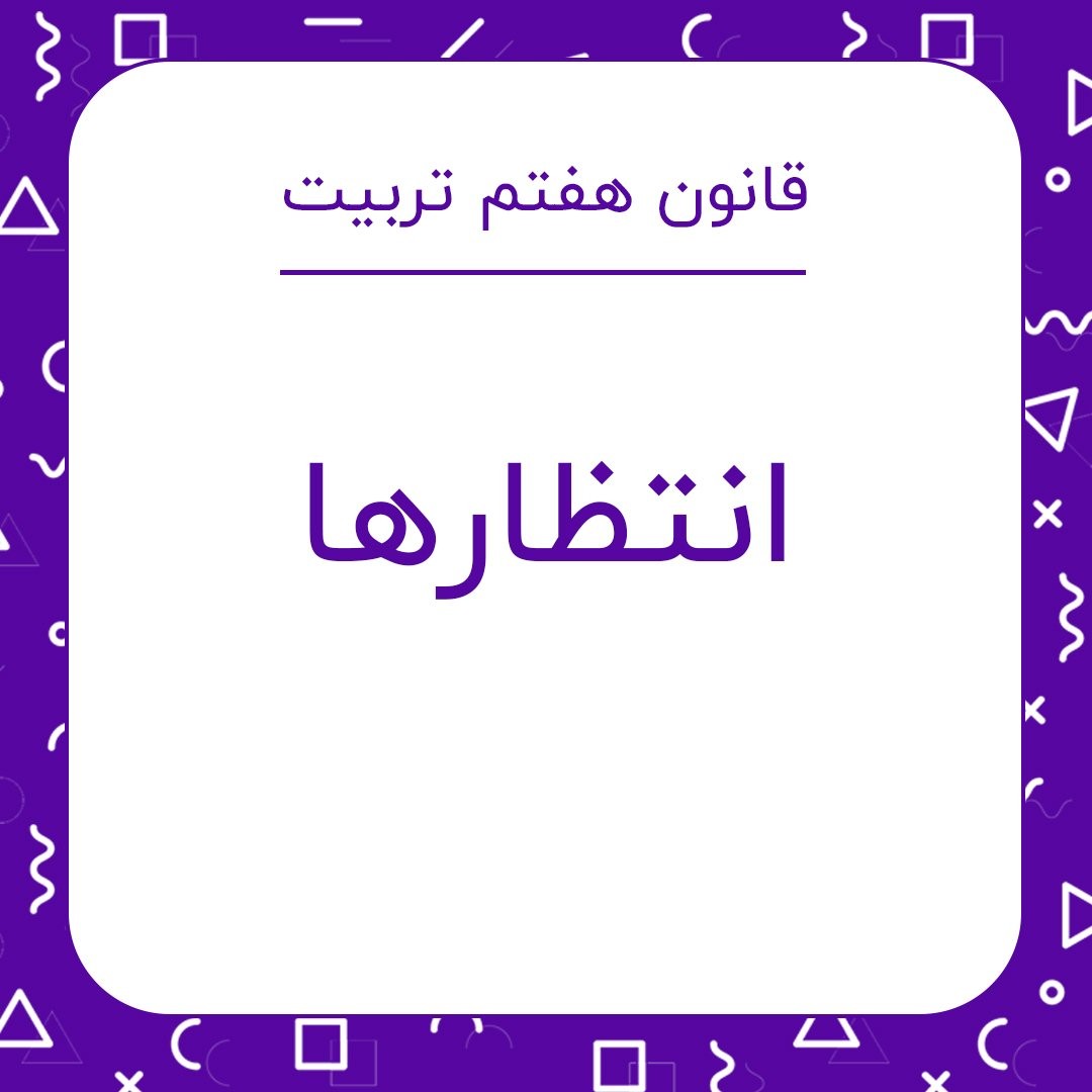 . وقتی مقرراتی را برای کودکتان تعیین می کنید، نباید آن را به سادگی تغییر دهید. اغلب والدین برای برقراری #آرامش در خانه و با پایان دادن به گریه فرزندشان، #قوانین را نقض می کنند اما اگر قاعده ای را تعیین کردید، هیچ کس - #پرستار بچه، همسرتان و حتی خود شما - نباید آن را نقض کند و همگی باید آن را محترم بشمارید. قانون وقتی قانون است که همه آن را رعایت کنند و در برابر آن مطيع باشند. اگر در جامعه امروزین ما #رعایت_قانون نهادینه نشده به این علت است که والدين قواعد مناسبی تعیین نکرده اند و آن ها را زیر پا گذاشته اند. #مادر_کافی