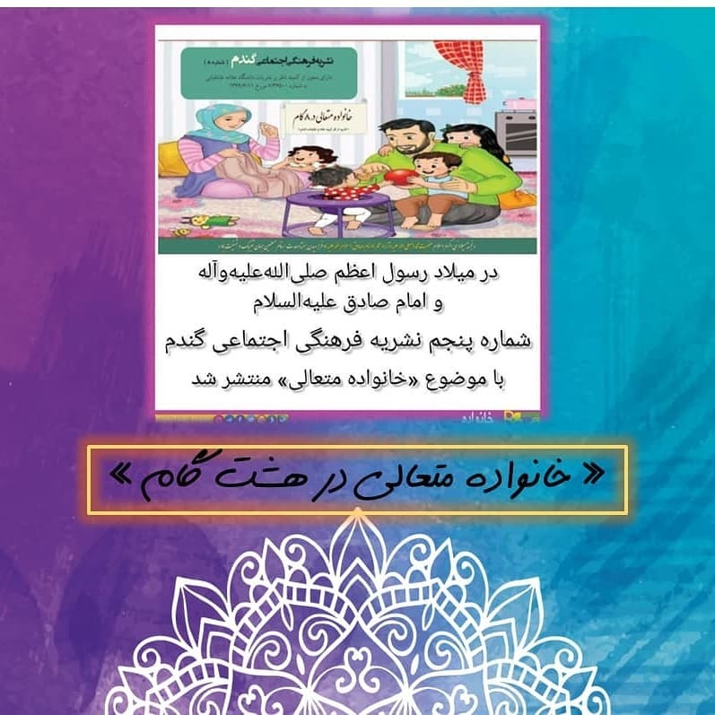 توصیه ما به شما والدین عزیز و گرامی این است که شماره پنجم نشریه فرهنگی اجتماعی گندم با محوریت خانواده که در میلاد پیامبر اکرم صلیاللهعلیهوآله و امام جعفر صادق علیهالسلام با موضوع خانواده متعالی در ۸ گام منتشر شد را حتما مطالعه بفرمایید. ا  وظایف همسری متقابل  نحوه ارتباط پدر با فرزندان  نحوه ارتباط مادر با فرزندان  مادر الگوی صبر  پدر الگوی اقتدار  وظیفه تربیتی والدین در قبال کودکان این مجله را میتوانید از اینترنت دانلود بفرمایید و یا درصورت تمایل دایرکت پیام دهید تا pdf آن براتون ارسال شود. #تربیت_اسلامی#کودک#خانواده_متعالی#مجله_گندم#روابط_موثر#پدر_کودک#مادر_کودک#خانواده