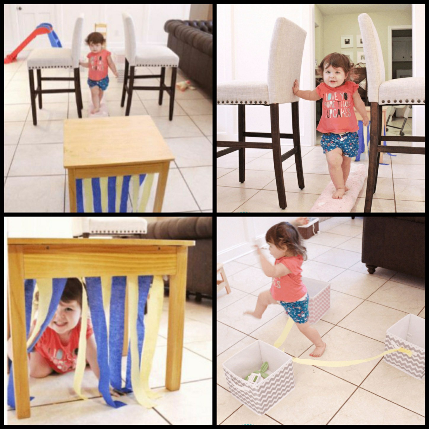 #بازی_حرکتی #تقویت_حرکات_درشت #هماهنگی_چشم_ودست #تقویت_تعادل گروه سنی: ۱۸ ماه تا ۲ سال بازی های ایستگاهی برای همه سنین هیجان انگیزه. برای کوچولوهای ۱۸ ماهه هم میتونیم قسمت های ساده تدارک ببینیم که برای تقویت حرکات درشت و هماهنگی چشم و دست و حس تعادل عالیه. چون تازه توانایی راه رفتن رو پیدا کردن، سعی کنین راه باریکی که باید از روش رد بشن ، محکم باشه مثل فرش لوله شده، که بتونن تعادلشون رو حفظ کنن. رد شدن از زیر یه میز که با نوار پوشونده شده، مثل یه تونل، براشون هیجان انگیزه. و در نهیت مانع های کوچیک که از روش بپرن یا رد بشن. میتونین با خلاقیت خودتون و با توجه به توانایی های کوچولوتون، قسمت ها رو اضافه کنین😍