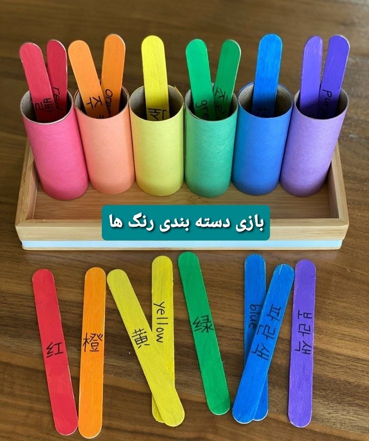بازی دسته بندی رنگ ها #شناخت_رنگها #تقویت_مهارت_حرکتی_ظریف #تقویت_کلام 🌈کودک از ۱۸ ماهگی رنگ ها رو میتونه از هم تشخیص بده و از حدود ۲ تا ۵ سالگی میتونه اسم رنگ ها رو هم بگه. اما این سن در کودکان، خیلی متفاوته و بازی در این زمینه میتونه کمک کننده باشه. ⭐ انواع ایده ها برای این نوع بازی وجود داره که تو عکس ها میبینین. ساده ترین شیوه، استفاده از کاغذهای رنگی و اسباب بازی های کودکه. اسباب بازی های هم رنگ هر کاغذ رنگی رو باید روی کاغذ مشابهش بگذاره. 👶🏻 میتونیم برای #تقویت_کلام ، از کودک بخوایم هر رنگی رو برمیداره اسمش رو تکرار کنه. یا ما رنگی رو نام ببریم و بخوایم که اون رنگ رو برداره و سر جاش بگذاره. برای بچه های بزرگتر، میتونیم از کودک بخوایم که هر رنگی رو برمیداره، یک عبارت دو کلمه ای با رنگ و شیء یا موجود یا اجزای محیطی که اون رنگ رو داره، بسازه. مثلا رنگ لگوی آب رو برمیداره و میگه آسمان آبی.