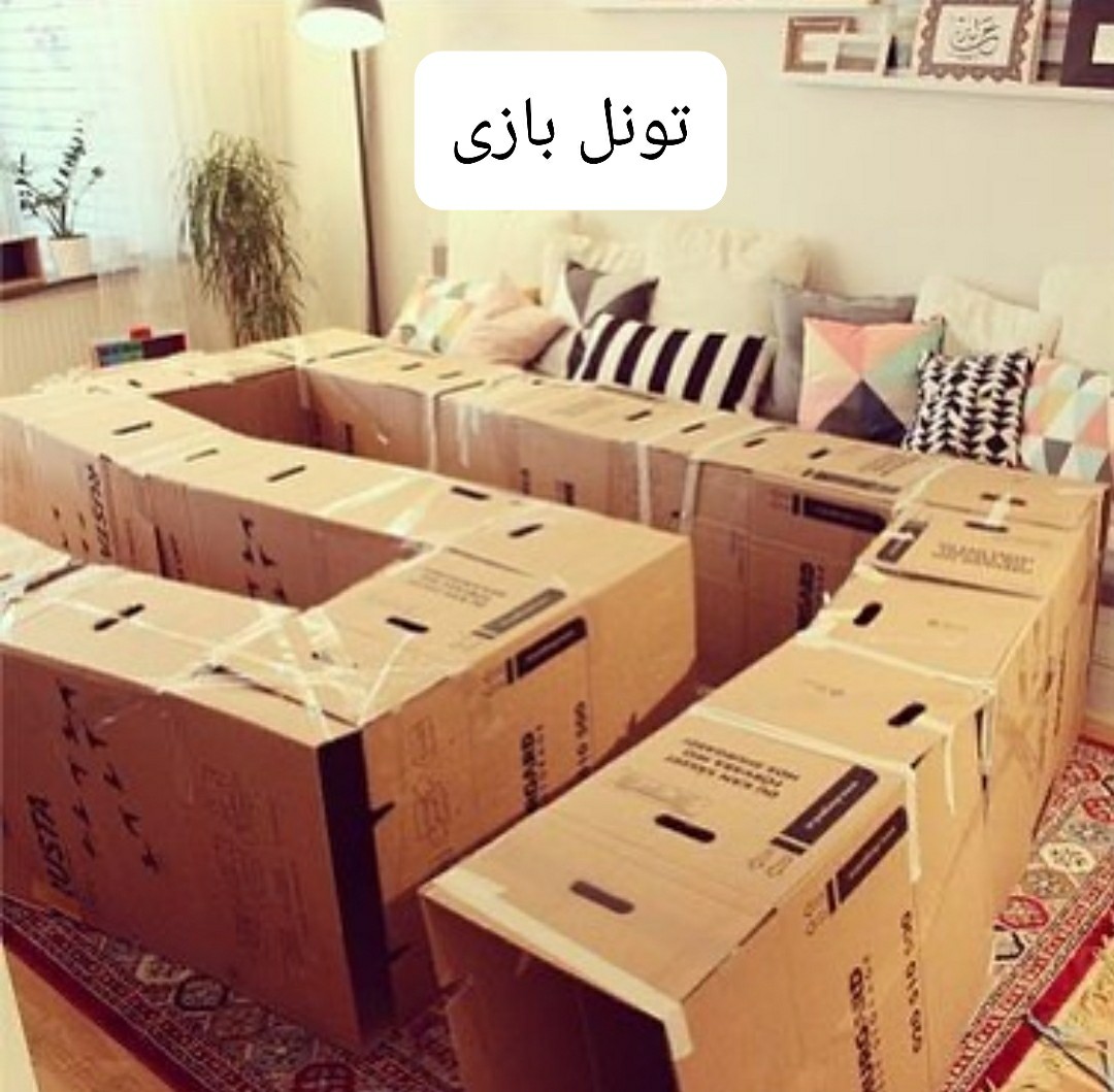 نام بازی: تونل_بازی #بازی_ابزاری #بازی_گروهی گروه سنی: ۱ تا ۳ سال وسایل لازم: مقوای کارتن - چسب رنگی- ماژیک – اسباب بازی در سایز های مختلف مراحل بازی: ۱. در مرحله اول اصلی ترین کار صورت می گیرد . رد شدن از تونل . حالا به صورت نوبت نوبت. قطاری و یا در مرحله بعد تر به صورت دنبال بازی توی تونل. ۲. بچه ها روی دیوارهای تونل با ماژیک و وسایل دیگه نقاشی می کنند. ۳. چسبوندن چسب های رنگی روی دیوارهای تونل هم میتونه جذاب باشه ۴. روی دیوار تونل سوراخ هایی با اندازه های مختلف درست می کنیم و بچه ها وسایل مختلف رو از توی سوراخ ها میندازن توی تونل و بعد میرن از توی تونل میارنش. تو این بازی تمرین می کنند که باید برای هر وسیله سوراخ مناسب اش رو پیدا کنند.
