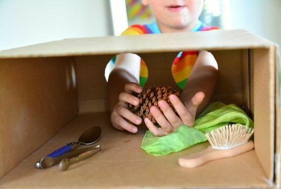 بازی شناخت اجسام با چشم بسته #تقویت_مهارت_استرگنوسیس #تقویت_مهارت_حرکتی_ظریف #تقویت_لامسه #گروه_سنی: ۳ سال به بالا استرگنوسیس یعنی قابلیت تشخیص ماهیت،شکل و اندازه شئ با چشمان بسته توسط حس لامسه یه سوراخ در یه جعبه کارتونی ایجاد میکنیم. اندازه سوراخ باید در حدی باشه که دست کودک به راحتی ازش عبور کنه. - اشیاء مختلف یا اسباب بازی های کودک رو داخل جعبه قرار میدیم. کودک باید دونه دونه، اشیاء رو برداره و با استفاده از لمس کردن، حدس بزنه چی تو دستشه. - میشه زمان گرفت و بازی رو سرعتی کرد. یا بین بچه ها مسابقه گذاشت. - میتونیم کاغذ رو به شکل کارت ببریم و عکس اشیاء رو، روی کارت ها بکشیم و کودک با دیدن هر کارت، باید شیء مرتبط باهاشو پیدا کنه و روی کارت مربوط به خودش بذاره. - میتونیم محتوای جعبه رو هدفمند کنیم. مثلا از هر پارچه با جنس و بافت متنوع، دو عدد تهیه کنیم. یکی رو داخل جعبه و یکی رو بیرون بگذاریم. کودک با یک دست پارچه بیرونی رو لمس میکنه و با دست دیگه ، پارچه مشابهش رو از داخل جعبه پیدا میکنه. - میشه انواع دسته بندی ها رو در مورد اشیاء داخل جعبه انجام داد. مثلا بر اساس اشکال هندسی(ازش بخوایم سه گوش رو پیدا کنه و ...) ، یا جنس اشیاء( اشیاء زبر و نرم و ...) ، یا نوع (اسباب بازی های حیوانات رو پیدا کن و ...)