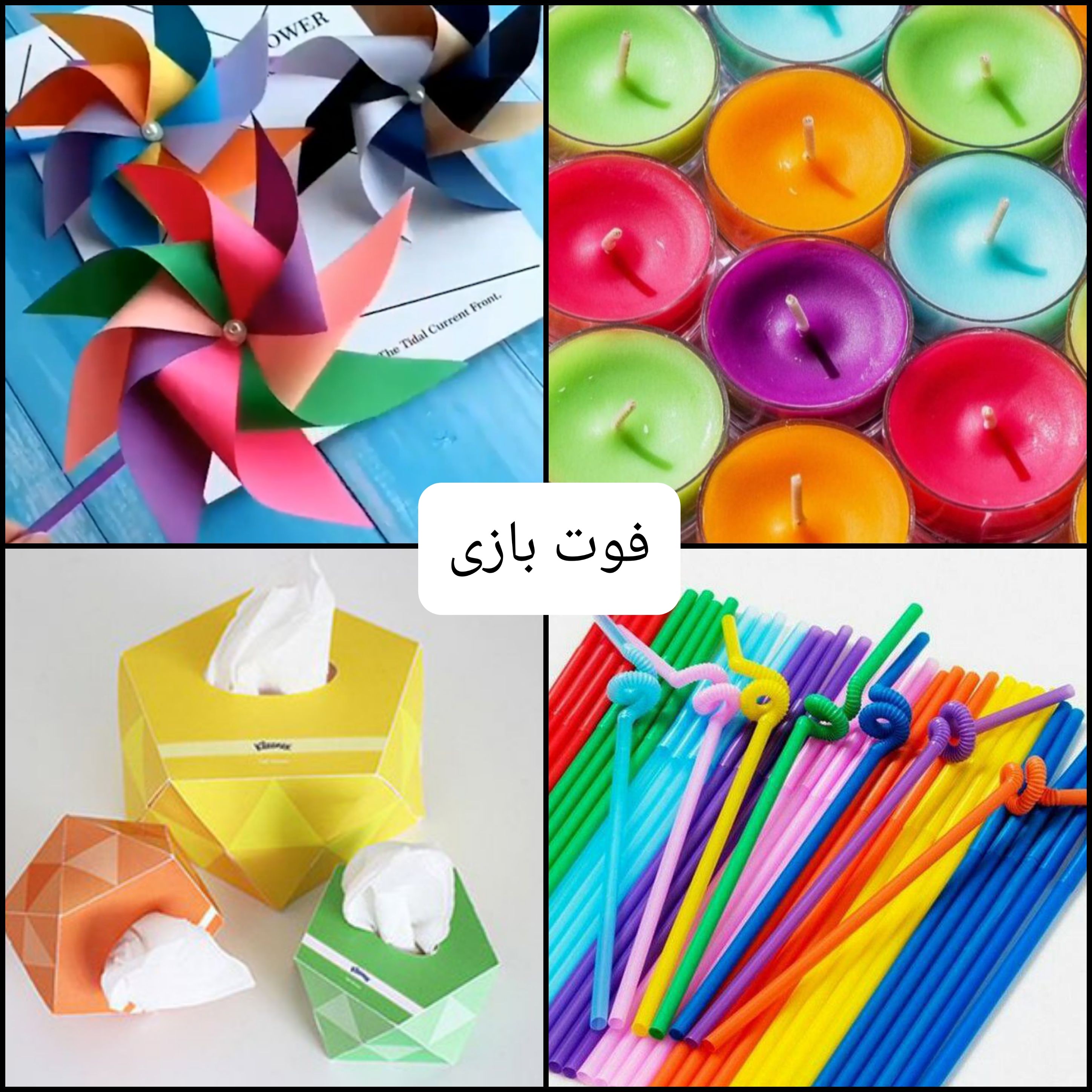نام بازی: فوت بازی #بازی_چندگانه گروه سنی: ۱ تا ۳ سال وسایل لازم: نی – دستمال کاغذی- لیوان –کبریت – شمع – وسایل لازم برای فرفره مراحل بازی: بخش اول: - ابتدا به هرکدوم از بچه ها تعدادی نی میدیم تا لمس کنن و جنس و شکلش رو ببینن و در مورد رنگ هاش صحبت می کنیم. - حالا می تونیم با نی تو صورت هم فوت کنیم!! - یه سینی بزرگ میذاریم و توش دستمال کاغذی ریز می کنیم تا بچه ها دستمال ها رو با نی فوت کنند. - حالا یه لیوان که مقدار خیلی کمی آب داره در اختیار هر یک از بچه ها میدیم تا با نی توش فوت کنند. بخش دوم: - تو این قسمت کبریت و شمع میاریم تا بچه ها دیدن آتیش و فوت کردن شمع رو تجربه کنند. بخش سوم: - با کاغذ رنگی و یک چوب مناسب یا نی برای بچه ها فرفره درست می کنیم تا این بار با فوت کردن چرخش فرفره رو ببینند. - حالا بدو بدو با فرفره و مشاهده چرخشش حین دویدن. - گرفتن فرفره جلوی باد کولر یا پنکه و مقایسه سرعت چرخیدن در سه حالت انجام شده