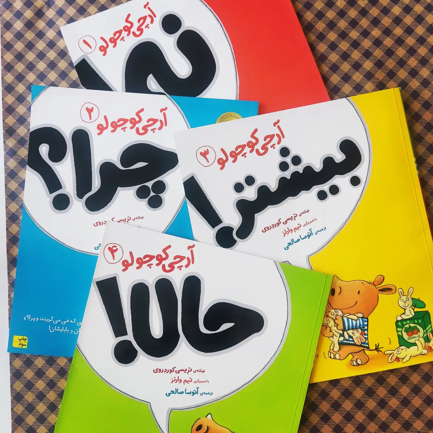 آرچی یک شخصیت بامزه و دوست داشتنیه که گاهی اوقات صبر نداره، گاهی مدام میگه چرا، گاهی مدام میگه نه، گاهی هم به کم راضی نیست و بیشتر میخواهد. 👫والدین آرچی با رفتار درست لحظات خوبی برای آرچی آفریدند. 📣ورق بزنید و توضیحات پشت جلد هر کدام را بخوانید 🌨️رده سنی: ۳تا۵ سال ☁️ناشر: افق نویسنده: #تریسی_کوردروی مترجم: #آتوسا_صالحی 🔻بهای مجموعه ۱۲۷ تومان جلد حالا ۲۳ ت جلد بیشتر ۲۳ت جلد چرا ۴۵ت نه ۳۶ ت 💌سفارش در دایرکت @abrakbookstore #کتاب #کودک #آرچی #آرچی_کوچولو #افق #کودک_پرسشگر #کتاب_کودک #والدگری #تربیت_فرزند #تربیت_کودک