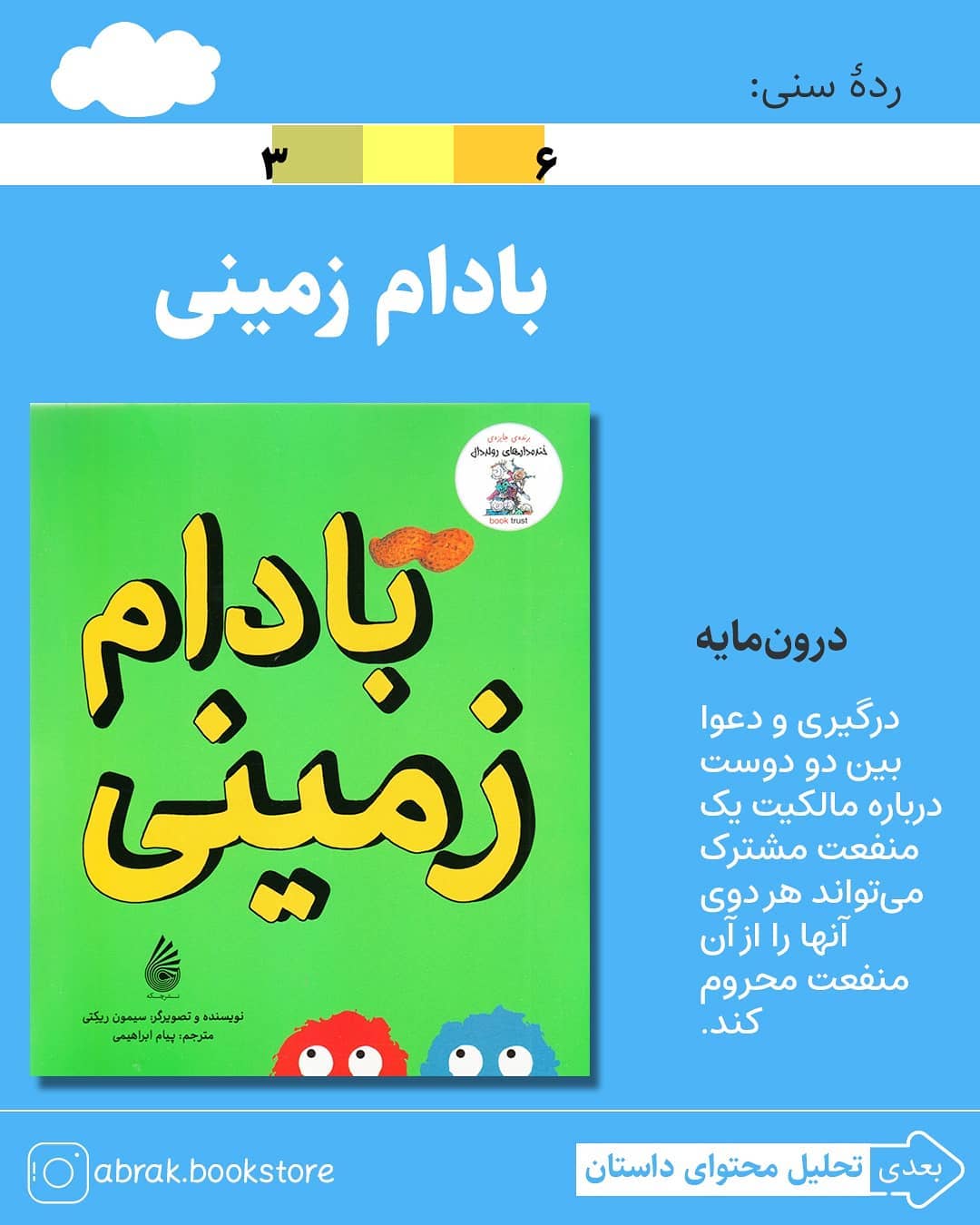قیمت چاپ موجود ۱۰۵۰۰تومان #بادام_زمینی #کتاب_کودک #کتابفروشی #داستان_تصویری #پیمان_ابراهیمی #سیمون_ریکتی #چکه