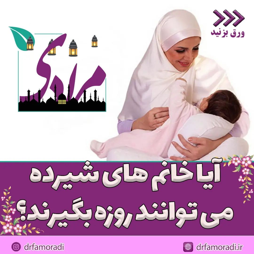 به نظر شما مادران شیرده می توانند روزه بگیرند؟ 🤔 بعد از پست قبل که در مورد روزه گرفتن مادران باردار صحبت کردیم، این بار نوبت مادران شیرده هست.👩🏻🍼 اسلایدهای بالا رو بخونید و با توجه به اون ها بگید نظر شما در این مورد چیه؟ شما زمان شیردهی به فرزندتون، روزه گرفتین؟ 🤔 دکتر فاطمه مرادی پزشک و متخصص طب ایرانی (MD_PhD) ☎️ برای گرفتن وقت ویزیت آنلاین در واتساپ به شماره 09353590649 پیام دهید. 🆔️ drfamoradi.ir 🌐 @drfamoradi #روزه #روزه_داری #رمضان #رمضان_كريم #شیر_دهی #مادر_شیرده #دکتر_فاطمه_مرادی #متخصص_طب_ایرانی #طب_ایرانی #طب_سنتی #طبسنتی #ماه_رمضان
