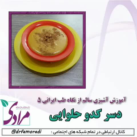 . _____________________________ 🔸️قسمت پنجم آموزش آشپزی سالم از نگاه طب ایرانی مربوط میشه به یه دسر خوشمزه! و البته سالم. این غذا تقریبا همون " کدو آش " گیلانی هاست و به عنوان غذای اصلی میل میکنن! ولی چون کاملا شیرینه میشه تو دسته دسر هم گذاشتش ، مثل شله زرد یا شیربرنج ، البته این غذا کدوی بیشتری داره و سبک تره. خلاصه این که خیلی خوشمزه و خاصه حتما امتحان کنید! 🍚 مواد لازم : کدو حلوایی ۴۰۰ گرم برنج (ترجیحا نیم دانه) یک سوم پیمانه گردو یک سوم پیمانه شیره یا شکر به مقدار لازم گلاب ۲ قاشق غذاخوری پودر زنجبیل ۱ قاشق چایخوری زعفران آب شده کمی در صورت دلخواه 🔪 طرز تهیه : 1️⃣ ابتدا کدو رو خرد کرده و کاملا میپزیم ، از طرف دیگه برنج رو با سه چهار برابر آب داخل قابلمه ریخته و می گذاریم حسابی وا برود یا به اصطلاح بشکفد. 2️⃣ کدو ، برنج و آب باقی مانده و گردوی خرد شده را داخل مخلوط کن می ریزیم. زنجبیل و گلاب را اضافه کرده و کاملا میکس میکنیم. 3️⃣ مواد رو دوباره توی قابلمه برنج بر میگردونیم ، زعفران و شیره انگور ( یا شکر بسته به مزاج شما) را اضافه کرده و هم میزنیم تا کاملا مواد یکی شده و یک دست شوند. 🥣 دسر رو توی ظرف سرو می ریزیم و با دارچین تزیین می کنیم. نوش جان! 😋 ❌ توجه کنید توی خوردن این غذا زیاده روی نشه چون زیادش برای بعضی مزاج ها یا معده ها خوب نیست. #آشپزی_سالم_مرادی #طب_ایرانی #طب_سنتی #دکتر_فاطمه_مرادی #آموزش_آشپزی_سالم_مرادی #متخصص_طب_ایرانی #دسر_کدو_حلوایی #دسر_سالم #کدو_حلوایی #کدو_آش