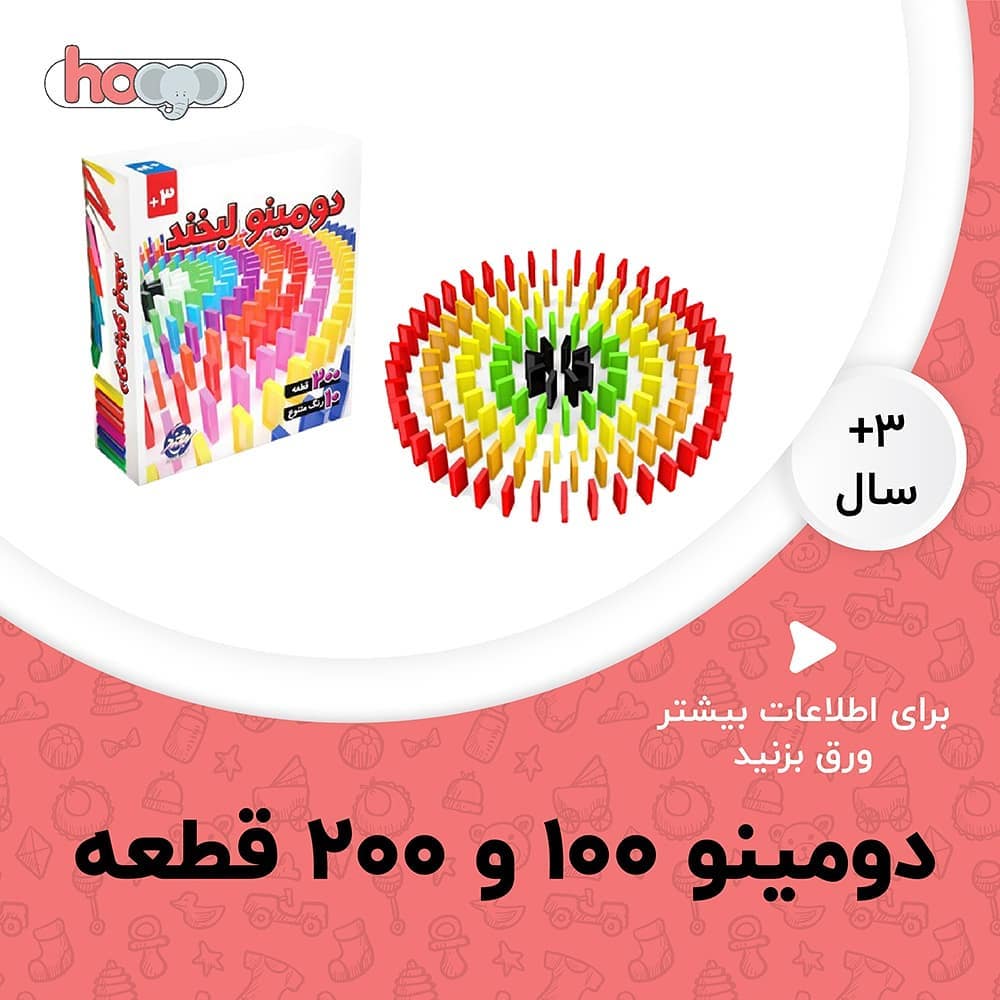 . ⭐ نام: دومینو ۱۰۰ و ۲۰۰ قطعه . 💰 قیمت: ۱۰۰ قطعه: ٣٠,۰۰۰ تومن ۲۰۰ قطعه: ۴۹,۰۰۰ تومن . 🔥 کد تخفیف: دایرکت بدین . 📏 ابعاد: ۲۰۰ قطعه: ۹.۵ در ۲۴ در ۲۹ سانتی متر ۱۰۰ قطعه: ۸ در ۱۶ در ۲۰ سانتی متر . سفارش از طریق دایرکت و یا مراجعه به سایت هویو به نشانی: www.hooyo.ir . . . . . . . #دومینو #اسباببازی #اسباب_بازی #کودک #دبستان #پیش_دبستانی #بازی_آموزنده #کودکانه #اسباب_بازی_های_هویو