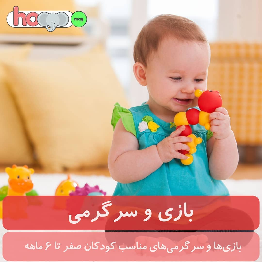* 🎈سرگرمی ها و بازی های مناسب کودکان صفر تا 6 ماهه👶: ✅در زمان صفر تا سه ماهگی بهترین و مهمترین سرگرمی برای کودک حضور پدر و مادر است. کنار فرزندتان بمانید. با او صحبت کنید، برایش آواز بخوانید به آرامی دست و پای کودکتان را تکان دهید. در این دوره از اسباب بازی هایی استفاده کنید که از رنگ های شاد و پررنگ درست شده باشند. همچنین نرم باشند مانند توپ و عروسک های پارچه ای، مخملی و خز دار. از سه ماهگی تا شش ماهگی میتوانید با نوزاد "دالی بازی" کنید. دستان خود را جلوی صورتتان بگذارید سپس همراه با صدا و چهره ای متعجب و شادان دست ها را از صورتتان بردرید. در این سن آینه هم می تواند برای کودکان جذاب باشد. با فرزندتان جلو آینه بروید و با صورتتان شکلک در بیاورید. #هویومگ #نوزاد #کودک #کودک #فرزند #بچه #مسواک #پاکیزگی #تربیت #آموزش #پسر #دختر #کودکانه #خانواده #مقاله #مراقبت #بازی #سرگرمی #بازی_کردن #بازی_و_سرگرمی #بازی_با_کودک