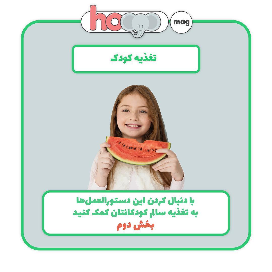 🔴منو را در اختیار آنها قرار دهید. این تصور که کودکان فقط به هاتداگ، پیتزا، پاستا و غذاهای پنیردار علاقه دارند اشتباه است. هنگامیکه بیرون از خانه غذا میخورید به کودکان اجازه دهید تا غذاهای جدید را امتحان کند. آنها ممکن است با انتخاب هایشان شما را شگفتزده کنند. همچنین از آنها بخواهید تا کمی از غذای شما را امتحان کنند. 🔴نوشیدنیهای سالم را در دسترس آنها قرار دهید. نوشابه و سایر نوشیدنی های شیرین شده، با شکر اضافهای که دارند اشتهای کودکان را برای تغذیه سالم کور میکنند. شیر و آب بهترین نوشیدنی برای بچهها هستند. آبمیوه نیز اگر 100% طبیعی باشد برای آنها مفید است؛ برای کودکان زیر 6 سال تا روزی 150 میلیلیتر آبمیوه طبیعی کافیست. 🔴دسرها و شیرینیجات را در جایگاه خود قرار دهید. دسرها برای تنوع خوب هستند اما آنها را به دلیل اصلی غذا خوردن کودکان تبدیل نکنید. هنگامی که دسر، جایزهی غذا باشد کودکان به طور طبیعی ارزش بیشتری نسبت به غذای اصلی برای آن قائل خواهند بود. 🔴آنقدری به غذا بها ندهید تا کودکان در زمان استرس و فوران احساسات نیز به غذا خوردن روی بیاورند. 🔴کودکان از شما الگوبرداری میکنند. برای کودکانتان الگو باشید و خودتان هم تغذیه سالم داشته باشید. وعده های سالم را به آنها اختصاص دهید و هیچ وعده غذایی را حذف نکنید. 🔴زمان تلویزیون و وسایل الکترونیکی را محدود کنید. تحقیقات نشان داده است، بدن کودکانی که استفاده از وسایل الکترونیکی را کاهش دادهاند درصد چربی کمتر نسبت به سایرین دارد. هنگامیکه کودکان استفاده از وسایل الکترونیکی و تلویزیون را محدود کرده شده باشند، زمان بیشتری را برای انجام فعالیتهای بدنی خواهند داشت. #هویومگ #هویو #تغذیه #مادر #کودک #تغذیه_سالم #آموزش #مقاله #hooyo_mag #hooyo_ir #child #kids #food #mother