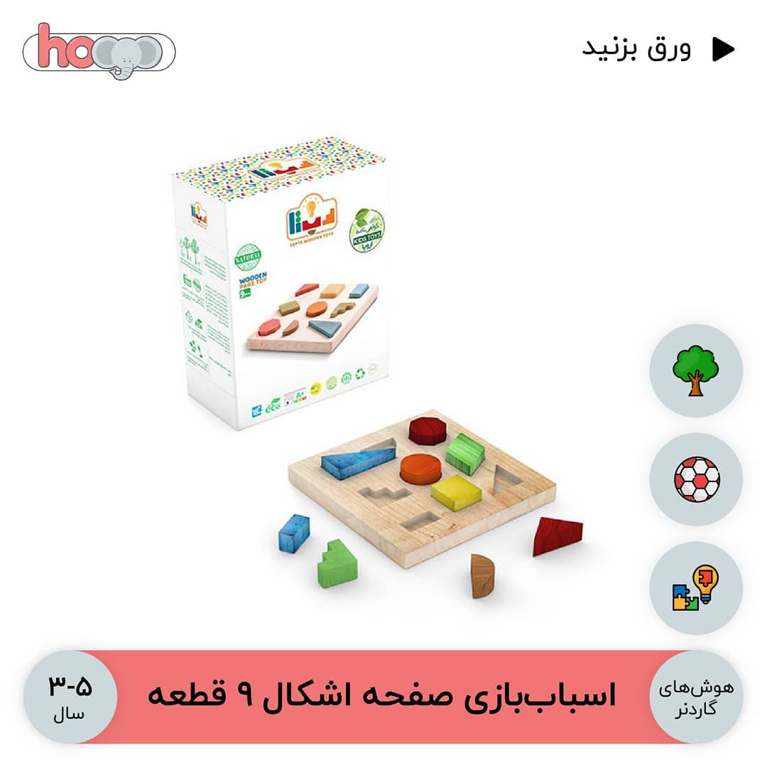 . اطلاعات محصول: نام: اسباب بازی صفحه اشکال ۹ قطعه گروه سنی : ۱.۵ تا ۳ سال تاثیرات آموزشی: - تقویت هوش تصویری-فضایی - تقویت هوش هوش حرکتی-جنبشی - تقویت هوش طبیعت گرا قیمت: ۶٩,۰۰۰ تومان کد تخفیف: دایرکت ابعاد جعبه: ۱۶ در ۸ در ۸ سانتی متر جنس اسباب بازی: چوب . . . . . . #اسباببازی #اسباب_بازی #کودک #اسباب_بازی_ارزان #آموزش #آموزشی #بچه #چوبی #کیفیت #بازی_فکری #تخفیف #جذاب #باکیفیت #کیفیت_عالی #چوب #سرگرمی #هدیه #عیدی #عیدی_خاص #ارزان