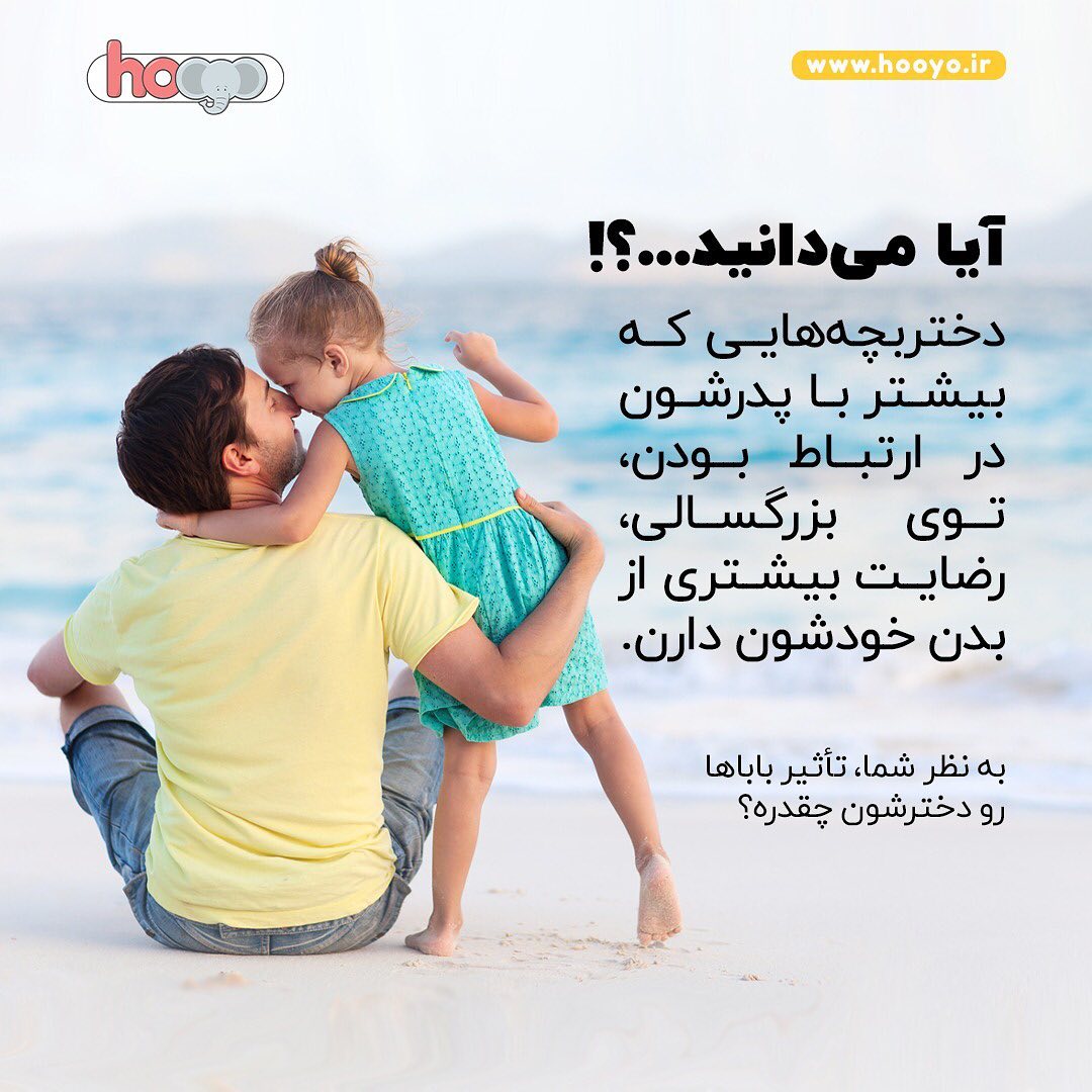 . تحقیقات خیلی زیادی راجع به ارتباط باباها با دخترهاشون تو کودکی شده و نتایج جالبی داشتن 🤯 یکی ازون نتایج ارتباط خوب پدر و دختری تو سنین پایین، افزایش رضایت دخترها نسبت به بدن خودشونه 🧍🏻♀️ یعنی اونا بدن خودشون رو بیشتر دوس دارن، کمتر به مشکلات تغذیه برمیخورن و اعتماد به نفسشون تو روابط بالاتر میره 😌 . . . به نظر شما چقدر باباها میتونن رو آیندهی دخترشون تأثیرگذار باشن؟ 🤔 . . .خ . #پدر #بابا #پدرخوب #پدرم_تاج_سرم #بابای_خوب #پدردختری #پدردختری👧👨❤️ #دختر #دختربچه #بدن #بدن_من #بدن_سالم #رضایت #رضایت_درونی #اعتماد_به_نفس #تغذیه #اختلال_تغذیه