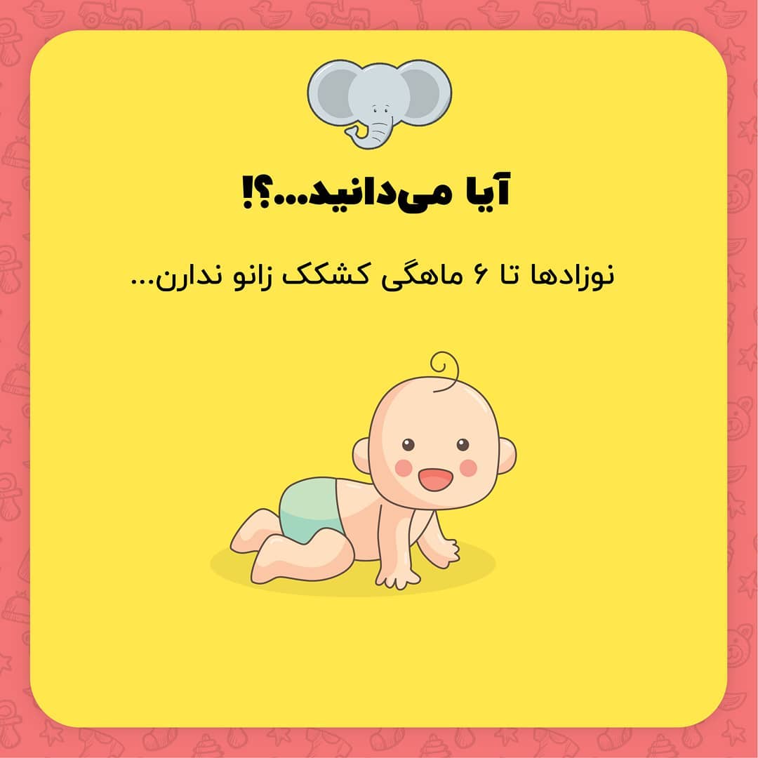 . کوچولوی شما کی راه رفتنو شروع کرد؟ 👶 . حتما دیدین که نوزادها اول روی دست و آرنجشون شروع به حرکت میکنن و بعد از زانوهاشون استفاده میکنن. جالبه بدونین تا ۶ ماهگی هنوز غضروفهای زانوشون شکل نگرفته و به همین خاطر نمیتونن چهار دست و پا راه برن. . . . . . . . . #ماه_تولد #تولد #تاریخ_تولد #بارداری #حاملگی #هفته_بارداری #جنین #نوزادپسر #نوزاددختر #بچه_ناز #نوزاد #نینی #اطلاعات_عمومی #جالب #دانستنی #علمی #عجیب #باحال #دانستنی #دانستنیها