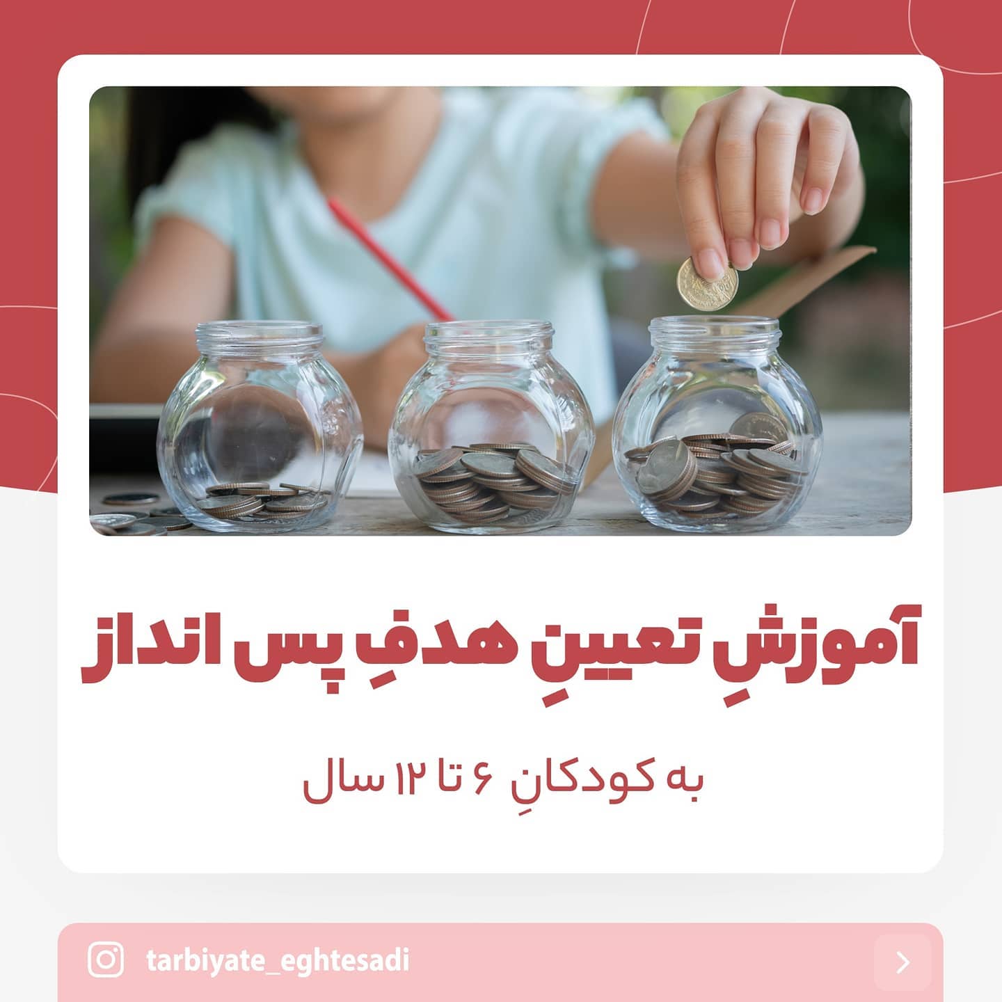 . ♥️ به نام خدا ♥️. . 🔴 تو این پست نکاتی که برای تعیین هدف پس انداز برای سنین ۹ تا ۱۲ سال لازمه والدین یا مربی بدونن رو گفتم. . 🔴 شما خودتون به عنوان والد یا مربی ، هدف گذاری و برنامه ریزی برای پس اندازتون دارید؟ برام تو کامنت ها بنویسید لطفا. . ~~~~~~~~~~~~~~~~~~~~~~~~. . #کودک#۶سالگی #۹سال #۱۲سال. #تربیت#فرزندپروری#اقتصاد. #پسانداز#پس_انداز#پس_انداز_را_بیاموزیم . #پساندازکنید #پس_انداز_کردن . #پس_انداز_پول_توجیبی . #آموزش#هدف#هدفگذاری . #هدف_گذاری #هدفگذاری_موفق . #سواد_مالی_و_اقتصادی . #سوادمالی#سواد_مالی_کودکان . #سوادمالی_خانواده #سواد_مالی_برای_کودکان . #سواد_مالی_شخصی . #هدف_پرتلاش . #هدف_پولدارشدن #هدف_مشخص. #بارش_فکری #تفکرخلاق #تفکرخلاق_در_کودکان .