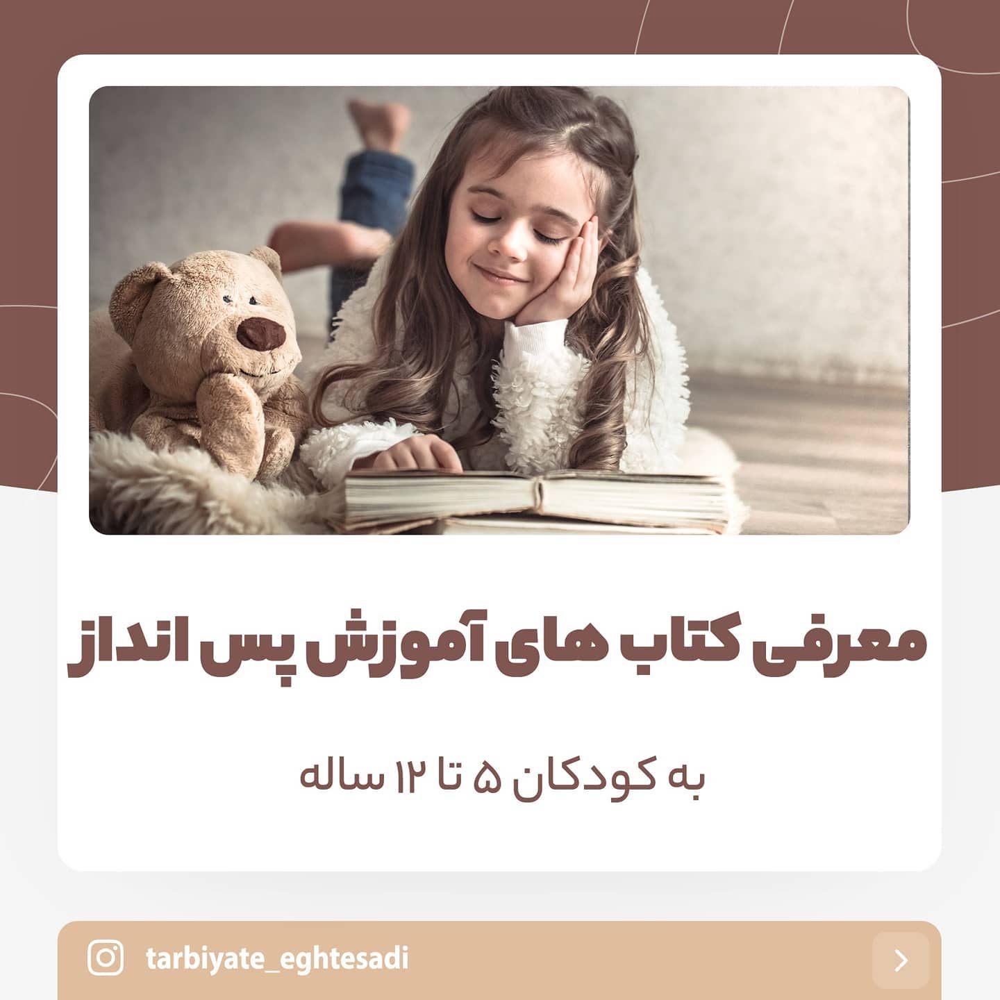 . 🤎 به نام خدا 🤎. . 🔴 تو این پست اول چند تا نکته درباره ی قصه گویی برای بچه ها گفتم براتون. . 🟠 بعد هم چهار تا کتاب خوب و معروف تو دنیا که در قالب داستان ، پس انداز رو به بچه ها آموزش دادن معرفی کردم. . 📚 این کتاب ها همشون توسط موسسه ی مفتاح حکیم ، ترجمه شدن و می تونید برای بچه هاتون تهیه کنید و بخونید. . 🍓 اینم بگم من تبلیغ نمی کنم و چون این کتاب ها رو برای بچه های خودم گرفتم و دیدم مفیدن و تو سایت های خارجی هم ازشون خیلی تعریف کردن ، بهتون معرفی کردمشون. . ♥️ پیج موسسه ی مفتاح هم روی اسلایدها تگ شدن میتونید برای تهیه ی کتاب بهشون مراجعه کنید. .~~~~~~~~~~~~~~~~~~~~~~~~ @ecoedu_meftah @tarbiyate_eghtesadi ~~~~~~~~~~~~~~~~~~~~~~~~.. #موسسه_مفتاح_حکیم. #پسانداز#پس_انداز. #کتاب#کتابخوانی #کتاب_خوب . #کتاب_بخوانیم #کتاب_خوب_بخوانیم . #کتاب_کودک#کتاب_کودک_نوجوان . #کتاب_کودکان #کتاب_کودکانه . #کتاب_کودک_خوب . #فرزندپروری#کتاب_اقتصادی_کودک . #کتاب_اقتصادی . #کودک#سواد_مالی_کودکان . #سواد_مالی_کودک .