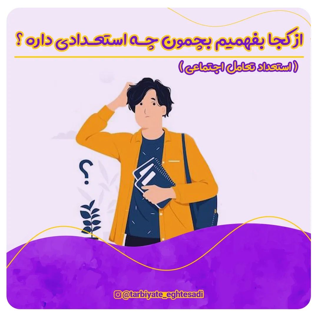 بچت ، تعاملِ اجتماعی خوبی داره ؟ @tarbiyate_eghtesadi @tarbiyate_eghtesadi @tarbiyate_eghtesadi 🟣 تو این پست در مورد یک استعداد دیگه توضیح دادم. 🟠 خودتون یا بچتون ، این استعداد رو دارید ؟؟ _________________________________ #اجتماعی#استعداد #تربیت#تربیت_کودک #استعدادیابی #تربیت_فرزند #تعامل#استعدادیابی_کودکان #تربیت_اقتصادی #تعامل_اجتماعی #تعامل_اجتماعی_کودکان