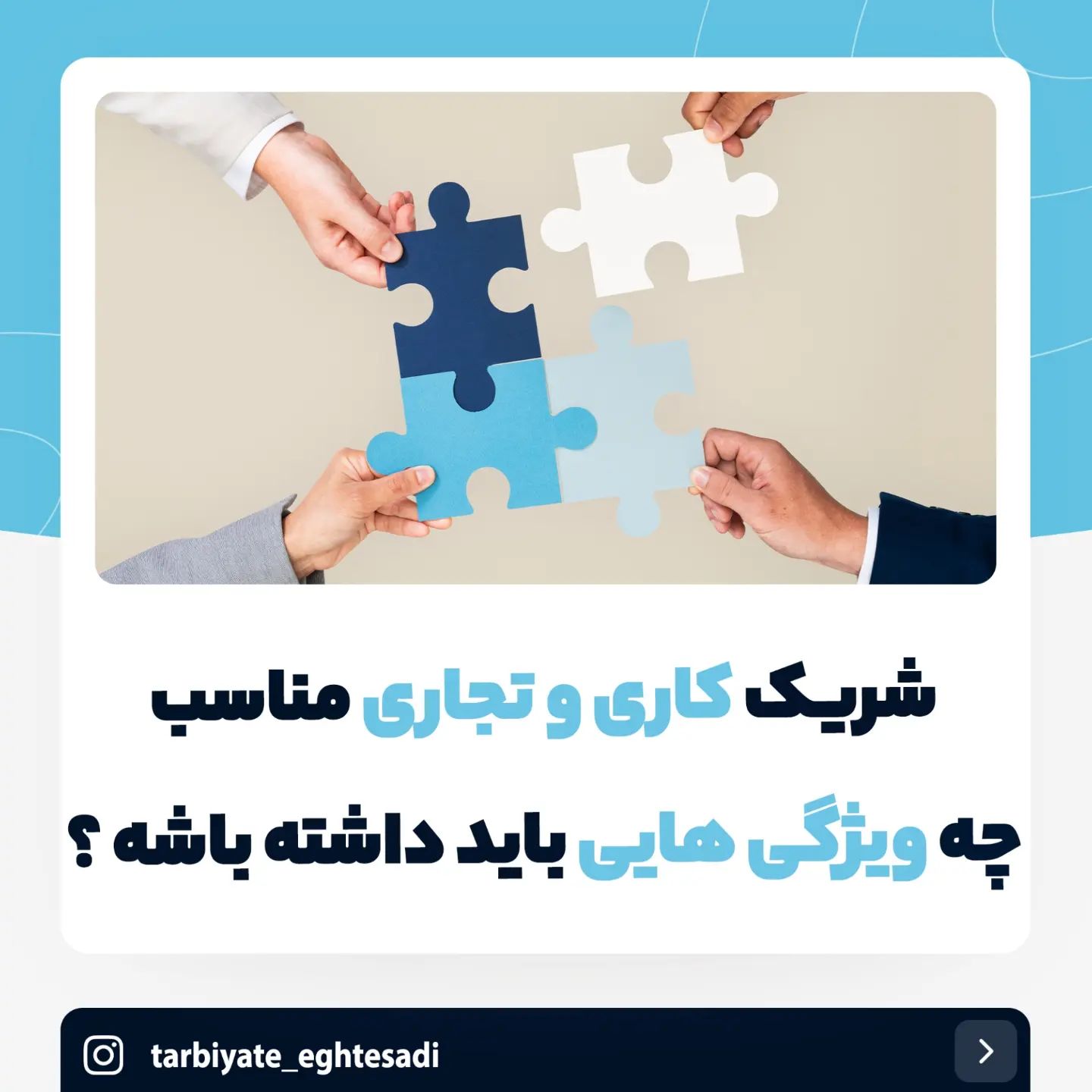 . 💙 به نام خدا 💙. . 🟠 اگر بخواید کسب و کار راه بندازید به شریک نیاز دارید ، تو این پست درباره ی ویژگی های شریک کاری و تجاری مناسب صحبت کردم. . 🔶️ اگر شما هم تجربه ای درباره ی شراکت دارید بنویسید 😊. . ____________________________________________________. . #کسب_و_کار#کسبوکار. #کسب_کار#کسبوکارموفق. #کسب_وکار#کسب_و_کار_موفق. #سواد_مالی#راه_اندازی_کسب_و_کار. #شراکت#تربیت_اقتصادی. #شریک_تجاری #شراکت_در_کسب_و_کار. #شراکتی#شراکت_تجاری. #شراکتدرکسبوکار.