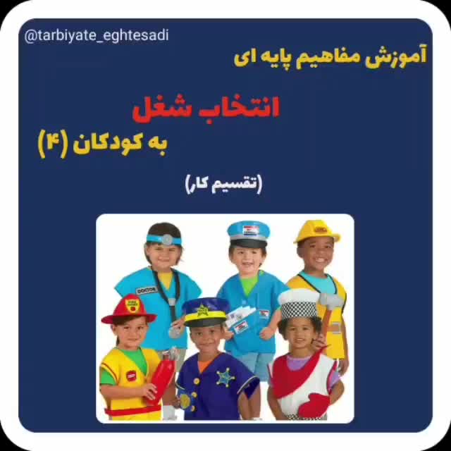 . 🔹️به نام خدا🔹️. . 🔴 در هر دو نوع تقسیم کار ، همه به هم وابسته هستن و اگر یکی نباشه ، کل مجموعه به هدفش نمیرسه. . 🟠 اغلب بچه ها زیر بار حرف رئیس یا مدیر گروه ، دوست ندارن برن ، باید بدونن مهم اینه که هر کی کارشو درست انجام بده. . 🟡 تقسیم کار رو به صورت عملی تو خونه میتونید به بچه ها آموزش بدید با تقسیم کارهای خونه و سپردن مسئولیتهای هر چند کوچیک به بچه ها ، یا مثلا تو سفر یا گردش بهش یه مسئولیتی بسپارید و متوجهش کنید که اگر کارشو درست انجام نده ، به همه آسیب میرسه. . ~~~~~~~~~~~~~~~~~~~~~~~~~. #تعلیم_وتربیت_اقتصادی. #تعلیم#آموزش#اقتصاد#کودک. #سواد_مالی#افقی#عمودی#فرزند_پروری. #هوش_مالی#هوش_اقتصادی. #تقسیم_کار#شغل. .