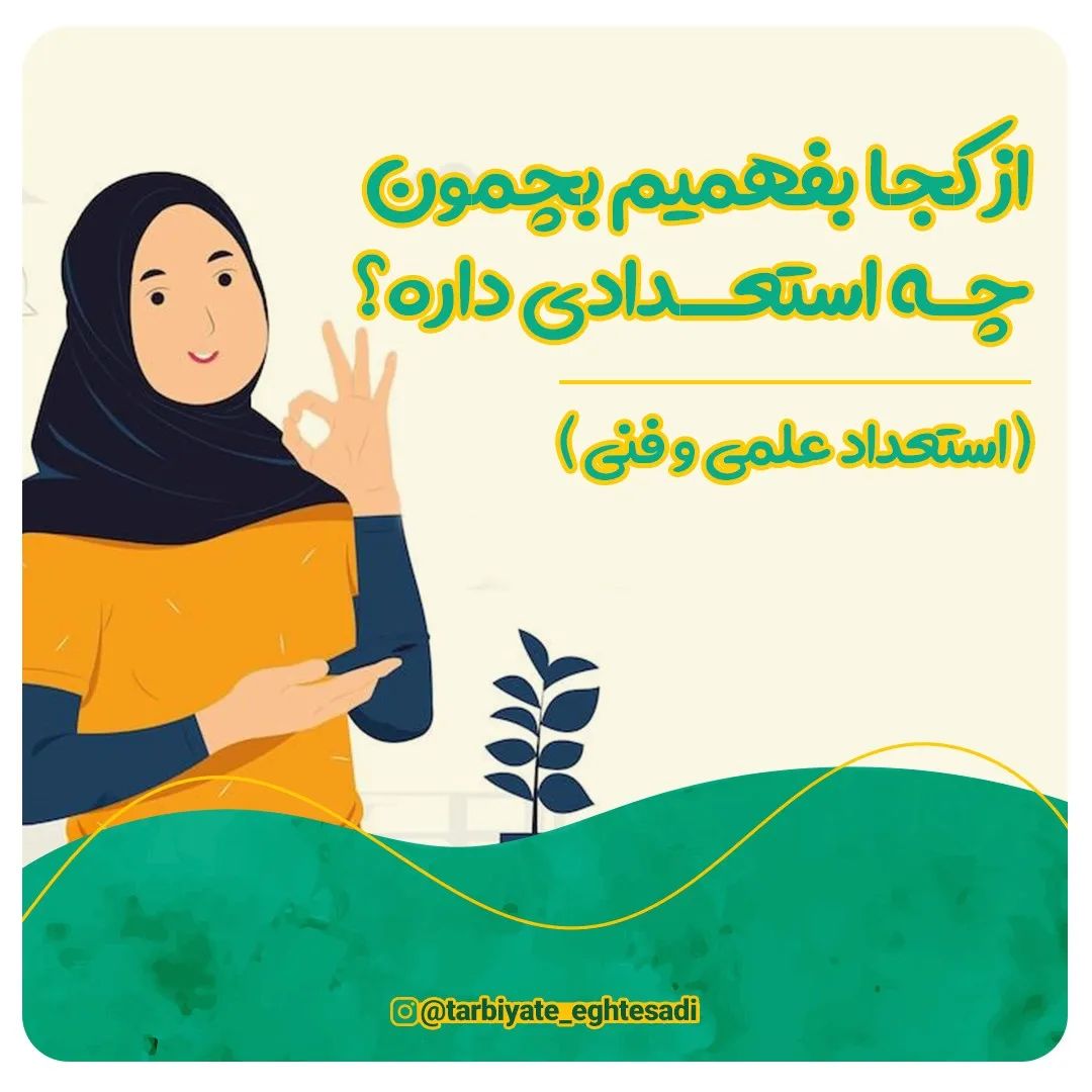 بچم چه استعدادی داره؟؟ @tarbiyate_eghtesadi @tarbiyate_eghtesadi @tarbiyate_eghtesadi 🟢 تو این پست در مورد استعداد علمی و فنی صحبت کردم. 🔴 دو تا نکته ی مهم : 🔶️ بچه ها میتونن چند تا استعداد رو با هم داشته باشن. 🔺️ موسسات استعدادیابی خیلیاشون سودجو هستن ، دنبالشون نرید لطفا . ✅️ صبر کنید و با من همراه باشید لطفاً. _________________________________ #علمی#استعداد#تربیت #تربیت_کودک#استعدادیابی #تربیت_فرزند#فنی #استعدادیابی_کودکان #تربیت_اقتصادی #تربیت_اقتصادی_کودکان #تربیت_اقتصادی_کودک