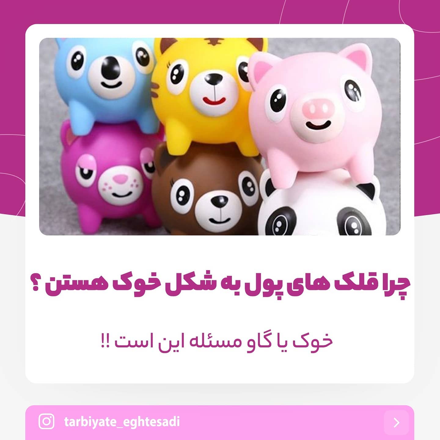 . 💜 به نام خدا 💜. . 🔴 تو برنامه ی من نبود اینو توضیح بدم اما دیدم خیلی در این مورد سوال کردید گفتم تاریخچه اش رو براتون بنویسم و چون میخوام پس انداز رو بگم و ممکنه باز هم مجبور بشم از قلک با شکل خوک استفاده کنم یک بار برای همیشه توضیحش رو براتون بنویسم. . . ~~~~~~~~~~~~~~~~~~~~~~~. . #قلک#قلک_سفالی #قُلک #قلک_کودک . #قلک_پول #خوک#گاو#نماد. #پس_انداز#سواد_مالی_و_اقتصادی . #سواد_مالی #کودک#تربیت#اقتصاد. .