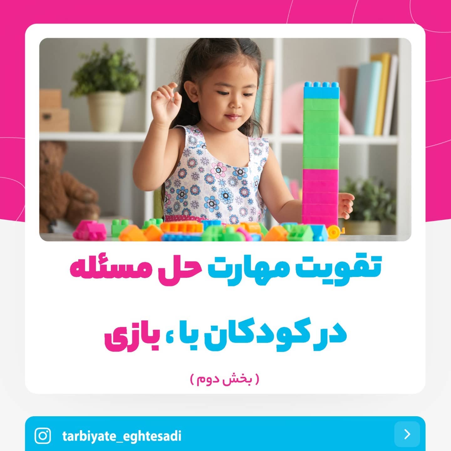 . 💙 به نام خدا 💙. . 🔴 تو پست قبلی دو تا از بازی ها رو گفتم برای همین این پست رو از شماره ی ۳ شروع کردم و ۵ تا بازی رو هم اینجا معرفی کردم. . ✅ این چند روز ، بازی ها رو به طور کامل تو استوری ها رو توضیح خواهم داد. . 🔶️ شما بگید کدوم یکی از این بازی ها رو با بچتون انجام دادین؟ . 🔷️ بازی دیگه ای سراغ دارید که به مهارت حل مسئله کمک کنه؟ تو کامنت ها بنویسید. . _________________________________. . #اقتصاد#کودک#تربیت#بازی. #حل_مسئله#حل_مسئله_كودكان . #بازی_فکری_کودک. #بازی_با_کودک#بازی_و_کودک . #بازی_آموزشی #بازی_کودکانه. #تربیت_اقتصادی_کودک. #سواد_مالی#مهارت. #پرورش#فرزند_پروری. #مهارت_حل_مسئله_در_کودکان.