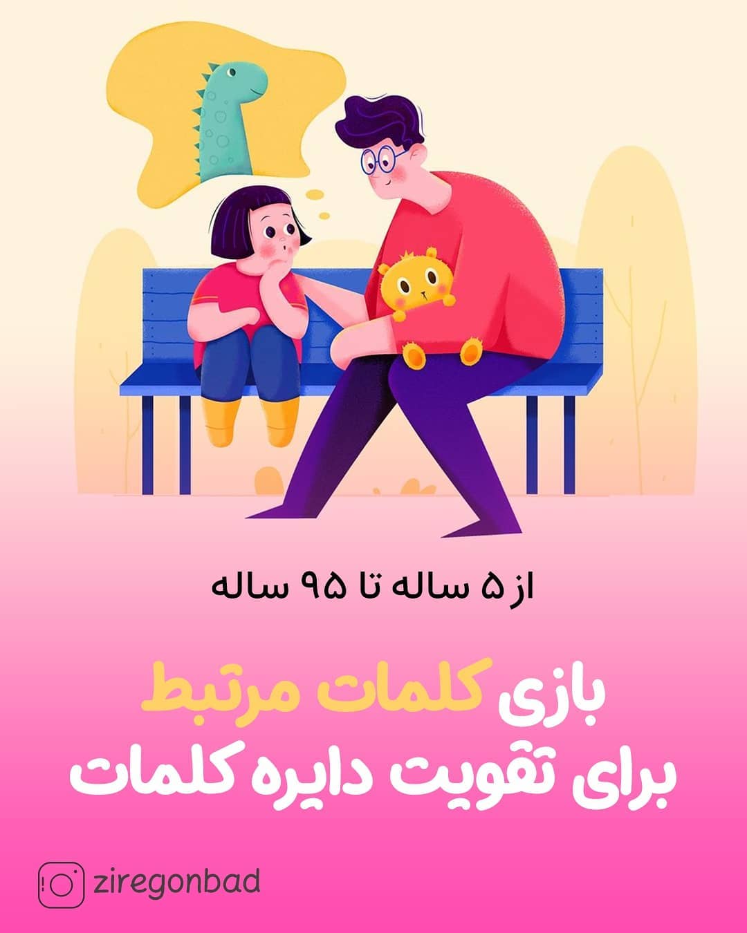 یک بازی ساده و مفرح و مفید برای جمعهای کوچک و بزرگ در هر سن و سالی.🥳 ✅این بازی جزو بازیهای زبانی است که با دو نفر و بیشتر میتوان آن را انجام داد. بازی اینچنین شروع میشود: 1. افراد کنار هم حلقه مینشینند. 2. یک نفر شروع میکند و یک کلمه میگوید. 3. نفر بعدی باید کلمهای بگوید که با کلمه قبل مرتبط باشد. 4. کلمهها نباید تکراری باشند. 5. فرصت فرد هم محدود است 🌻 این بازی ساده ولی مفرح را میتوان دونفره با کودک انجام داد یا در جمع خانوادگی از کودک و بزرگسال دور هم بنشینند و انجام دهند. میتوانید برای بازی قواعد دیگری هم بگذارید تا سختتر شود. 🌟میتوان این بازی را در کلاس درس نیز انجام داد. 🌟این بازی برای تقویت لغات فعال کودک و بزرگسال عالیست. @ziregonbad @ziregonbad #بازی_زبانی #دایره_لغات #ادبیات #کلاس_درس #فعالیت_کتابخوانی #کتاب #کودکستان #کتاب_کودک #آلزایمر #بازی_با_کلمات #بازی_ساده #گفتگوباکودک #فبک