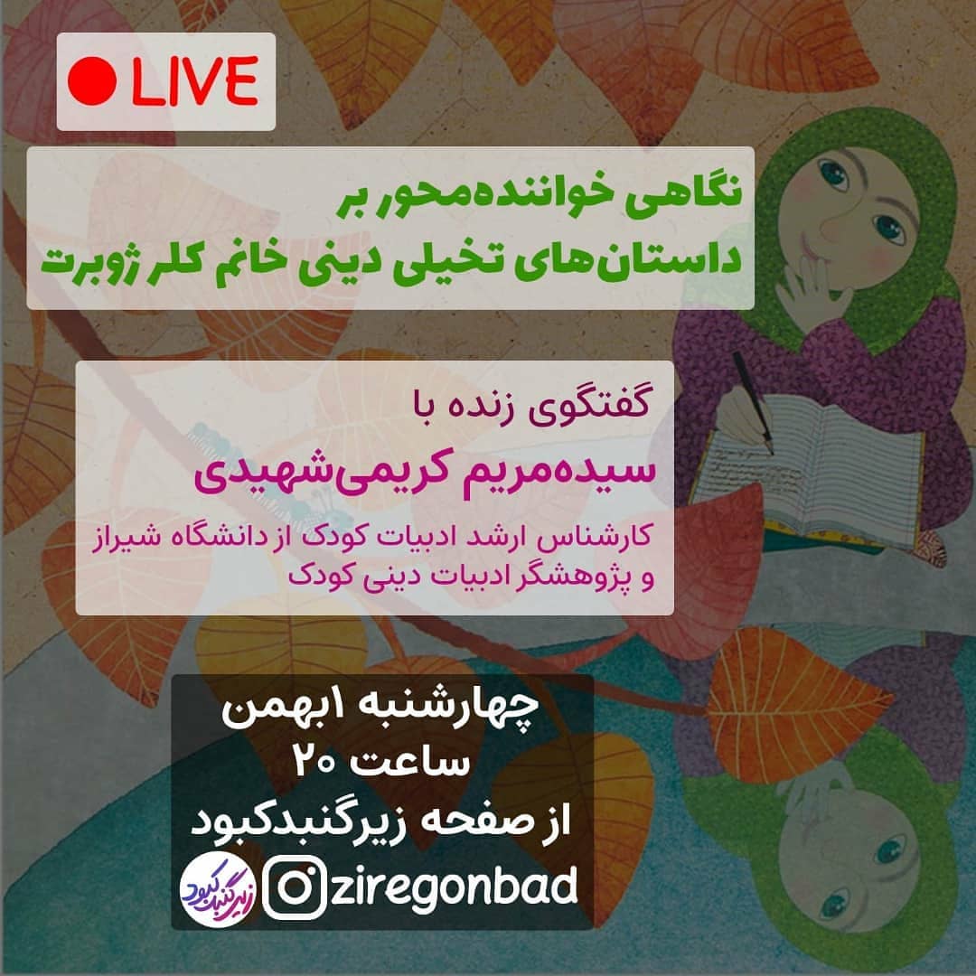 در سالهای اخیر در نقد و بررسی کتابهای کودک رویکرد نقد مخاطب محور مطرح شده است. رویکردی که کودک را به عنوان مخاطب در نظر میگیرد و محتوا و سبک و درونمایه داستان را از زاویه دید کودک بررسی میکند. خانم سیده مریم شهیدی در گفتگوی زنده چهارشنبه شب ساعت بیست قرار است آثار دینی خانم ژوبرت را از منظر خواننده محور بررسی کند. زادگاه خانم کلر ژوبرت فرانسه است و ایشان در اوان جوانی به مسلمانی گرویدهاند و سالهاست ساکن ایران هستند و برای کودکان داستان مینویسند. اغلب داستانهای ایشان دینی و اخلاقی است. @clairejobert @smary.sh کدام کتاب ایشان را مطالعه کردهاید؟ #ادبیات_کودکان #کلر_ژوبرت #مریم_شهیدی #ادبیات_دینی #داستان_کودک