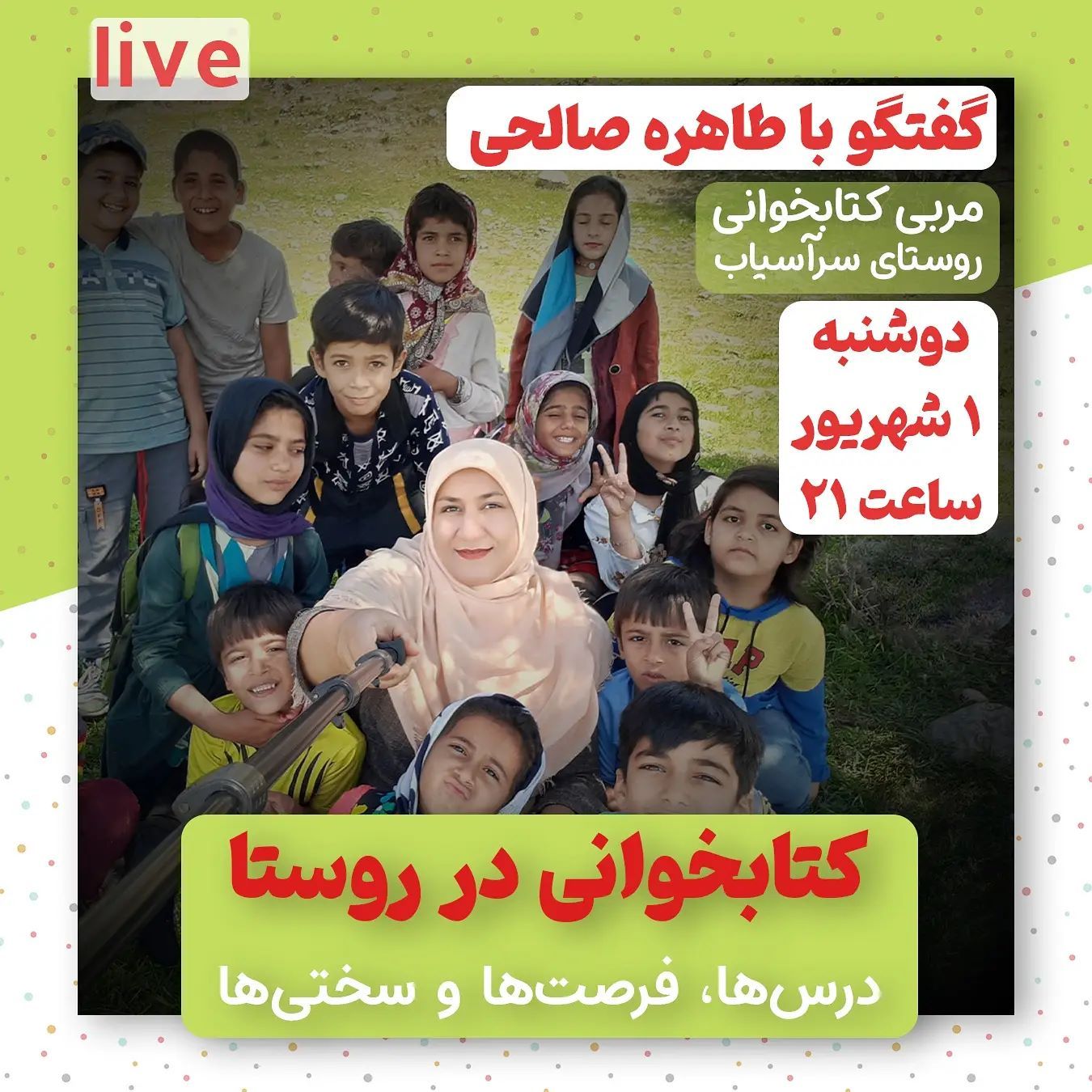 زیر گنبد کبود طاهره صالحی را از کارهای فعالانهاش شناخت. بعضی راهکارهایی که زیر گنبد کبود برای فعالیت کتابخوانی میداد را خانم صالحی خیلی زود و سریع و باکیفیت با بچههای روستایش انجام میداد و بازخوردش را برای ما میفرستاد همین باعث شد توجهمان به سایر فعالیتهایش جلب شود. دیدیم تا چه اندازه عاشق کارش است سختی میکشد و تلاش میکند تا نسل بعدی روستا آگاهتر، داناتر و امیدوارتر باشند. طاهره صالحی، ارشد زمین شناسی دارد. خانم صالحی اکنون هم مهندس معدن است و هم مربی کتابخوانی دو روستا در کهکیلویه و بویراحمد. پیاده بین دو روستا در رفت و آمد است و برای بچهها کتاب میبرد و میخواند. دوشنبه شب قرار است با ایشان گفتگو کنیم. از تجربیاتش بشنویم و درباره موارد زیر باهم گفتگو کنیم: کتابخوانی برای کودکان در روستا فعالیت کتابخوانی برای کودکان کتابهای مناسب و شیوههای ارتباط با کودک و... @salehi.t8 @zeinabimantalab @ziregonbad #کتاب #کتاب_کودک #روستا #معلم_روستا #کتابخوانی #فعالیت_کتابخوانی