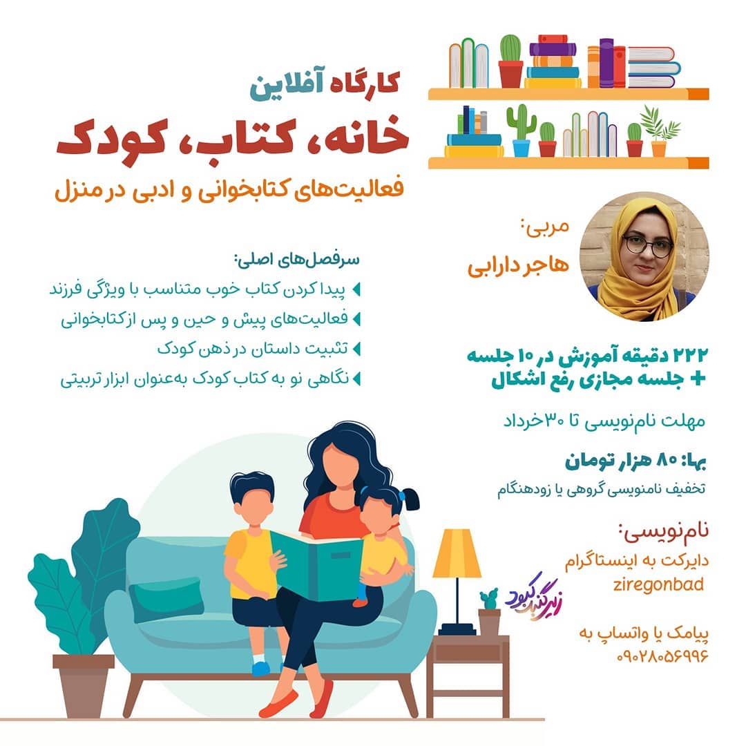 درباره کارگاه و تخفیفهایش آیا شما از آن دست والدینی هستید که زیاد کتاب در اختیار کودکتان قرار میدهید؟ آیا دوست دارید کودک کتابخوان داشته باشید؟ میخواهید موقع کتاب خواندن با کودکتان به شما خوش بگذرد؟ میخواهید تکنیکهای کتابخواندن همراه کودک را توسعه بدهید؟ کارگاه هاجر دارابی را از دست ندهید. خانم دارابی هم یک مادر باتجربه است و هم روحیه پژوهنده و جستجوگر دارد و سبد دانستههایش حسابی سنگین است و آماده است تا با شما به اشتراک بگذارد. این دوره پر و پیمان را از دست ندهید. 💥 30درصد تخفیف نامنویسی زودهنگام تا سهشنبه 💥تخفیف نامنویسی گروهی ۱۰ درصد برای دونفری ۱۵ درصد برای سه نفری ۲۰ درصد برای چهارنفری 📝نامنویسی در دایرکت پیامک یا واتساپ به شماره ۰۹۰۲۸۰۵۶۹۹۶ @ziregonbad @ziregonbad #کارگاه #کتابخوانی #کتاب_کودک #فعالیت_ادبی #هاجر_دارابی #کتاب #تربیت_فرزند #بازی #والدین #تربیت #فرزندپروری #مادران #مامان_ها #بابا #کتاب_بخوانیم #کاردستی #کاردستی_کودکانه #کتابباز #کتاب_باز #تسهیلگری #فبک #کاربرگ #کاربرگ_آموزشی #تربیت_فرزند #کارگاه_تربیت_فرزند #ادبیات_کودک #کودک #کارگاه_تابستانه #کودک_خلاق #سرگرمی #سرگرمی_کودک