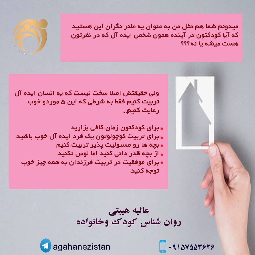 کمک می کنم رابطه بهتری با فرزندت داشته باشی روانشناس و درمانگر تخصصی کودک و نوجوان مشاور والدین /نویسنده کتاب فرزندپروری آگاهانه مشاوره ۰۹۱۵۷۵۵۳۶۲۶