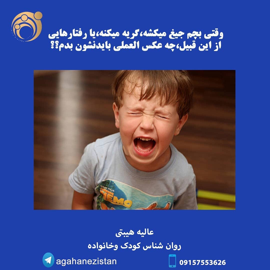 . حتما شما هم با رفتارهایی مثل جیغ کشیدن،گریه کردن،فریاد زدن واین قبیل رفتارهای فرزندانتون مواجه شدین. دراین مواقع چه عکس العملی نشون میدین؟ گاهی بچه ها یه خواسته ای دارن وبا این رفتارها میخوان شمارو تسلیم خواسته هاشون کنن.گاهی هم خواسته مشخصی ندارن ،بهانه میگیرن! مثلا شما دارین تلویزیون میبینید ، میان جلوی تلویزیون وایمیستن فقط جیغ میکشن یا گریه میکنن!!!! چه مواقعی که نمیدونید دلیل این رفتارهای بچه ها چیه ،وچه مواقعی که میدونید دلیل چیه،بهترین عکس العمل چیه؟ من الان بهتون میگم!! اول از همه باید قاطع باشین ،مادامی که بچه ها این رفتارها رواز خودشون نشون میدن فقط بگین من زبون گریه یا جیغ رو نمیفهمم !!! اگر میخوای بفهمم چی میگی باید باهام حرف بزنی .اگر همچنان به کارش ادامه داد ،بزارینش تو اتاقش بگین عزیزم تاهروقت که دلت خواست میتونی گریه کنی یا داد بزنی ،هروقت گریه یا جیغ ودادت تموم شد ،بیا پیش من باهم حرف میزنیم .گریه یا جیغ ودادتو برای بقیه مزاحمت ایجاد میکنه،بخاطر همین باید بری تو اتاقت تا هروقت که دلت میخواد به کارت ادامه بدی . وقتی توی فروشگاه ،مرکز خرید یا محیطی بیرون ازخونه هستین وبچه ها این رفتارها رو از خودشون نشون دادن ،اونها رو به سمت ماشین ببرین وهمین دیالوگ هارو تکرار کنید! اگرهم مهمونی هستید وبچه ها این رفتارهارو نشون دادن ،اگرمهمونی خودمونیه میتونید بچه هارو به اتاق خواب ببرید ، اگرهم خیلی خودمونی نیستین بچه هارو ببرین بیرون مثلا توی ماشین وهمین دیالوگ رو بگید. فقط دقت کنید مادامی که برای ساکت شدن بچه ها بهشون باج بدین این رفتار با شدت بیشتری تکرار میشه نه باج بدین نه به رفتارهاشون توجه کنید. توجه نوعی تقویت منفی به حساب میاد ودقیقا باعث تثبیت رفتار میشه . برای بچه های دوساله میتونید از این روش استفاده کنید. #تقویت_منفی#بدرفتاری#تربیت#تقویت_مثبت#مهمانی#جیغ#گریه#فریاد#داد#تثبیت_رفتار#والدین#فرزند_پروری#عالیه_هیبتی