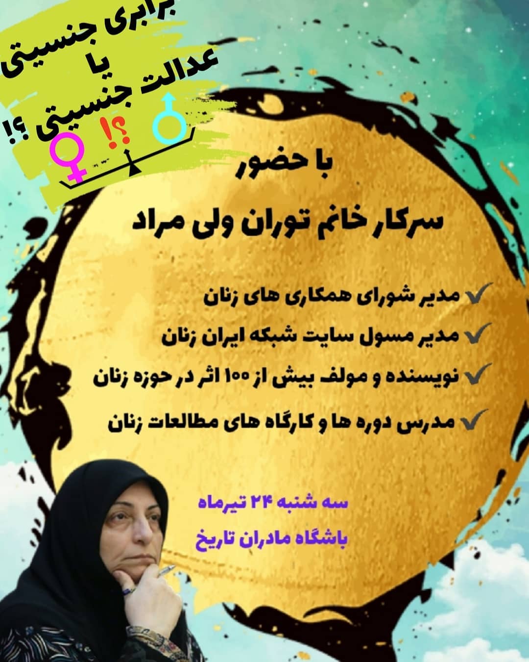 بسم الله.. امروز گروه مهمان داره سرکار خانم #ولی_مراد مدیر #شورای_همکاری_های_زنان مهمان امروز سه شنبه های گروه هستند تا در مورد موضوع #برابری_جنسیتی یا #عدالت_جنسیتی بحث و بررسی داشته باشیم. نظرات و سوالات تون رو در مورد این موضوع برای ما بفرستید. #سه_شنبه_های_باشگاه #باشگاه_مادران_تاریخ #بررسی_مسائل_زنان #شبهات_زنان #زنان