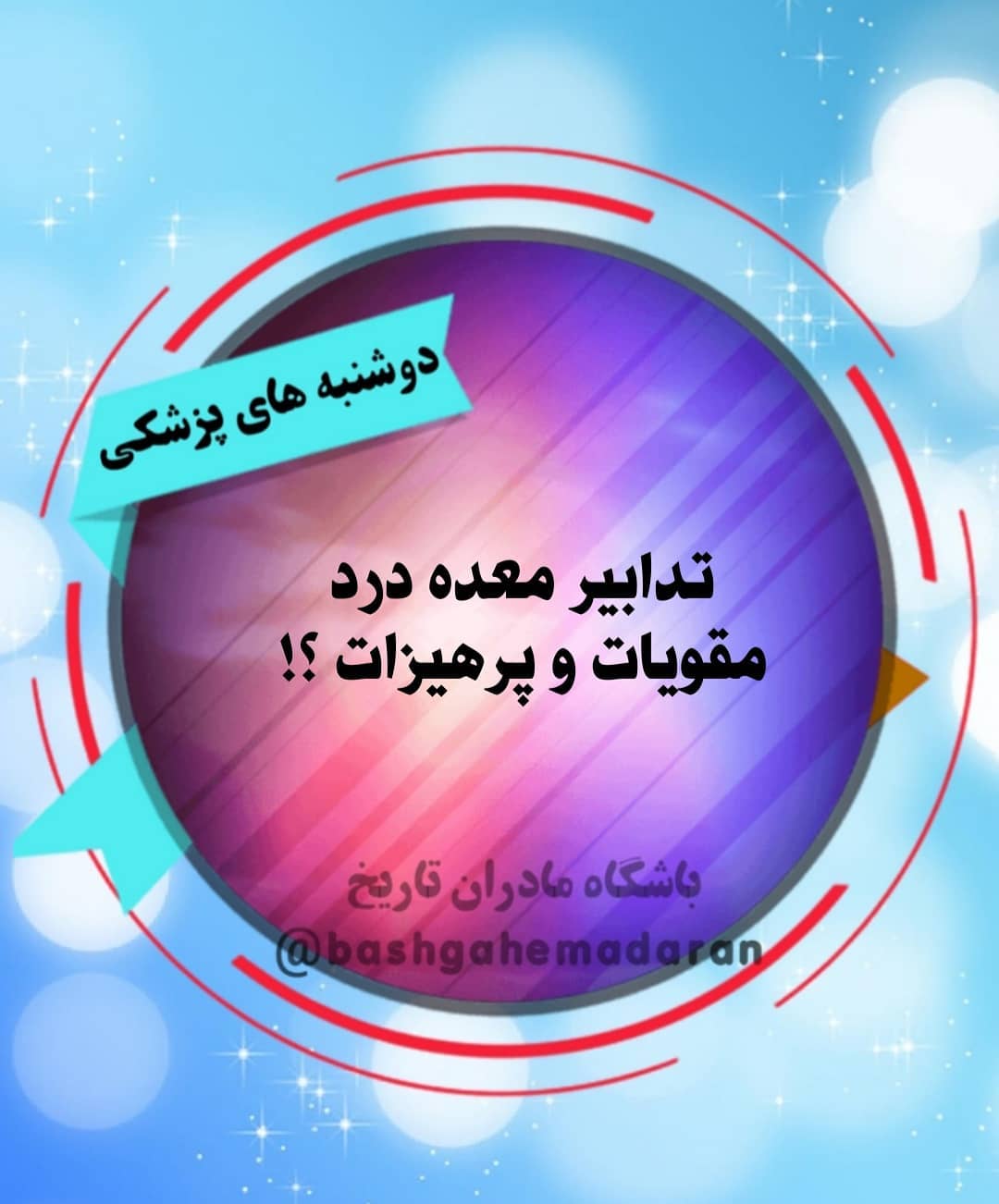 بسم الله.. بیشتر آدمها تو زندگی شون با معده درد مواجه میشن ؛ و تجربه این درد رو دارن پس خوبه که با تدابیر لازم برای درمان و پیشگیری از این درد رایج رو بدونیم. 🚫پرهیزات : آب سرد❄ سالاد و ماست با غذا🍱 آب ناشتا💧 قهوه و کافه و چای پررنگ و شکلات🍫☕ مرکبات🍋 نوشابه گازدار🍺 غذای مونده😨 غذاهای خمیری مثل ماکارونی و حلیم و پیتزا و الویه، ترید (تلیت) ها🍜🍝🥣 قارچ🍄 ✅مقویات معده: آب عسل🍯 جُلاب🥃 ماءالشعیر طبی🥤 آش جو، شیربرنج، فرنی🍚 گوشت کبابی🍢🍗🍖 سیب🍏🍎 رب انار شیرین😋 به😋 مویز🍇 بادام🥜 و از مهمترین موارد: ✳خوب جویدن غذا #دوشنبه_های_باشگاه #باشگاه_مادران_تاریخ #طب_سنتی #معده #درد_معده #مقویات_معده #پرهیزات_معده