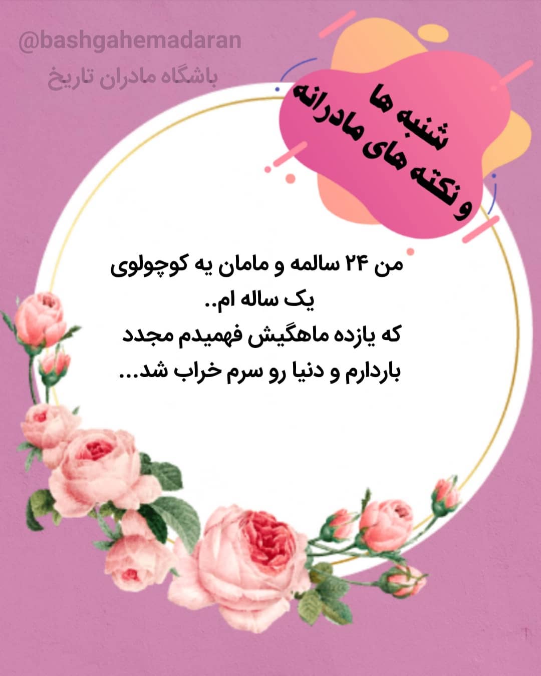 بسم الله.... تو این شنبه نشستیم پای درد دل یه مامان که خداخواسته داره مجدد مامان میشه... 🍃🍃🍃🍂🍂🍂🍂🍂🍃🍃🍃🍃🍃 من ۲۴ سالمه و مامان یه کوچولوی یک ساله ام.. که یازده ماهگیش فهمیدم مجدد باردارم و دنیا رو سرم خراب شد... پسرم بشدت وابسته و بد قلق هست و نوزادی کولیکی و سختی داشت الانم نه شیشه میگیره نه پستونک با هیچی هم جز سینه خودم اروم نمیشه تو شهر غربت هستم و تنهام و همسرم همیشه سرکار هستن و کارشون بشدت سخته حالا من موندم و یه بچه یه ساله و کلی استرس بارداری مجدد جدای اینکه با اینکه ده هفته ام جرئت نکردم ب کسی غیر مادرم بگم چون سرسختانه مخالفن حالا من چی کنم چجوری از شیر بگیرم کوچولومو و با این افسردگی و استرسی ک ب جونم افتاده چی کنم ترس اینکه مگه من چند سالم بوده مامان دوتا بچه شدم عذاب اینکه اینهمه درس خوندم و الان فقط بشیم خونه😢😭😭😭 🌱🌱🌱🌱🌱🌱🌱🌱🌱🌱🌱🌱🌱 ممکنه برای شما یا اطرافیان تون هم همچین شرایطی پیش اومده باشه... چه احساسی داشتید؟! چطور شرایط رو مدیریت کردید؟! برای این مادرمون چه هم دلی ای دارید؟! 🎈🎈🎈🎈🎈🎈🎈🎈🎈🎈 قسمتی از صحبت های بقیه مامان ها: ✅تمرکز روی نقاط مثبت مثلا: ✅مزیت فرزند آوری در سن کم، اختلاف سنی کم با فرزندان است. ✅فاصله کم بین فرزندان در همبازی شدن آنها و فراغت بیشتر مادر در چندسال بعد تاثیر دارد ✅اگر در حال شیردهی باردار بشوید شیر کم کم مزه اش عوض میشه و خود بچه رغبتی برای خوردن ندارد. آماده شیر دادن با شیرخشک وشیشه باشید. ✅کمک گرفتن از همسر در کارهای مربوط به فرزند بزرگتر ✅ کمتر درگیر کلیشه های خانه داری بشوید ✅ آنهایی که در شهر دیگری هستند تلاش کنند دایره امن را بزرگتر کنند همسایه هم محلهای هممسجدی و... ✅استرس بچه کوچک و پست سرهم داشتن کم میشه ✅تقویت بدن و رفع کمبودها ی آن وتقویت روح و روان با توسل وتوکل ✅پذیرفتن و آماده شدن خودمان و فرزند قبلی برای ورود فرزند جدید ✅رنج همیشه در زندگی هست رنج لازمهی رشده. اگر خودمون انتخاب نکنیم خدا برامون انتخاب میکنه (برگرفته از صحبت های استاد پناهیان) ✅از همه مهمتر این بچه نعمت خداست و آرزوی خیلیها. قدردانش باشید #شنبه_های_باشگاه #شیر_به_شیر #بارداری_ناخواسته #بارداری_خداخواسته