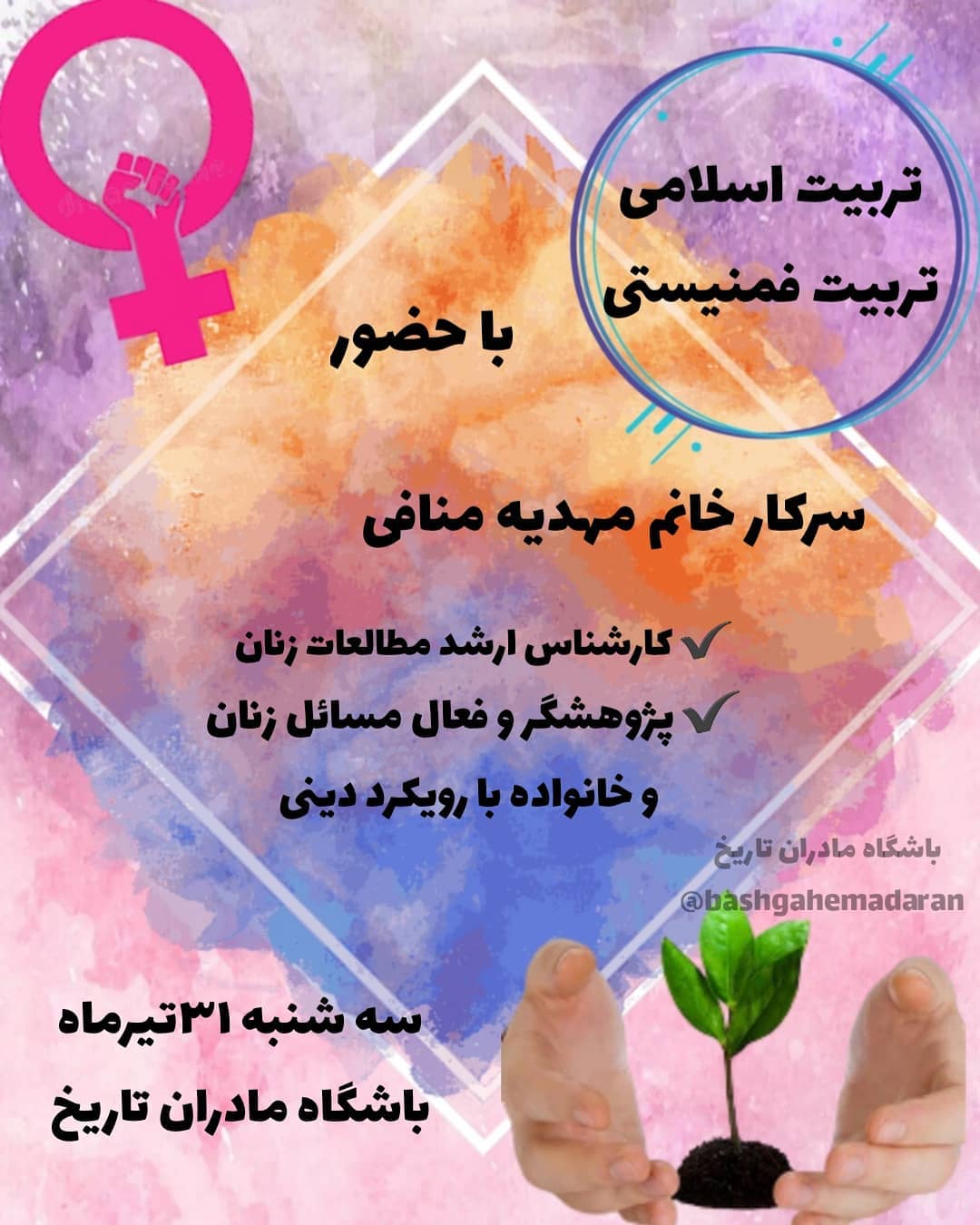 بسم الله چقدر براتون مهمه که مدل تربیتی تون اسلامی باشه یا فمنیستی؟! رعایت چه نکاتی باعث میشه فرزندمون چه دختر چه پسر در آینده نگاه ضد مرد یا ضد زن نداشته باشه؟؟ چقدر به این فکر کردید که بچه هایی تربیت کنید تا در آینده فردی راضی از هویت جنسی خودش باشه؟! امروز میخواهیم با حضور خانوم منافی در مورد این مسائل صحبت کنیم... شماهم سوالات تون رو اینجا مطرح کنید تا به ایشون منتقل بشه.... #سه_شنبه_های_باشگاه #تربیت_اسلامی #تربیت_فمنیستی #نگاه_جنسیتی