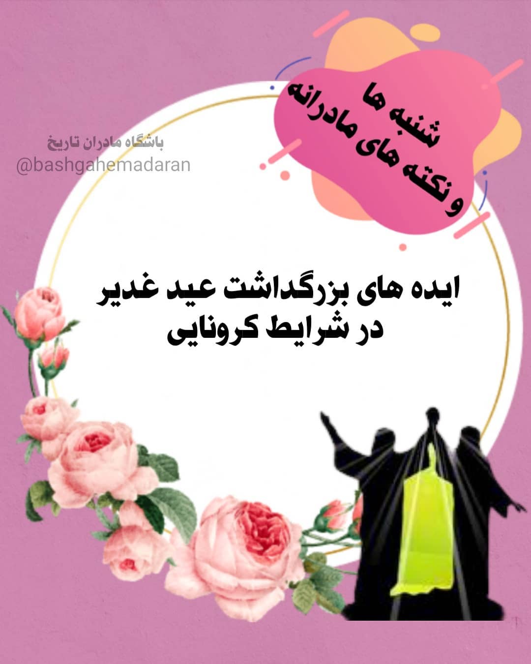 بسم الله... *ایده های عید غدیر در شرایط کرونا* 🔺تزئین پنجره ها و منزل 🔺هدیه برای کودکانمان 🔺هدیه برای اقوام و بچه هایشان(پست کنیم یا ببریم درب منزلشون) 🔺پخش هدایا درب منزل یا خیابان(با بسته بندی،دستکش و ماسک) 🔺اطعام(مثلا آبمیوه بسته بندی، یا غذایی که قابل گرم کردن باشه) 🔺دادن هدیه به خانه سالمندان،بهزیستی ها،خیریه های کودکان کار، روستاهای اطراف تهران 🏝🥧🥛من به ذهنم رسید که گلدون کوچولو تهیه کنم و همراه پک کیک و آبمیوه به همسایه هامون بدم و چون اطعام این روز هم سفارش شده 🏚🥖🥐یا پول بدیم به نونوایی محلمون که نون صلواتی بده (تو ایام شهادت این کارو زیاد میکنن اما اعیاد ندیدم) 📚کتاب جشن بزرگ برکه نشربهار دلها،پیکسل 😷نذر ماسک با کیفیت سبزرنگ 🎁کیسه پارچه ای با طرح غدیری 🌈تزیین خونه 🎽لباس نو پوشیدن هم توصیه شده شاید برای پسرم لباس نو بخرم و خودم و همسرم هم در حد جوراب یا... نو بخریم و بپوشیم 🔈پخش مولودی توآپارتمان تزیین آسانسور 📲💻صله رحم تصویری دانلود یه انیمیشن قشنگ واسه بچه ها مثل بنیامین،فیلشاه....یه سینمایی خونگی بسازید #شنبه_های_باشگاه #باشگاه_مادران_تاریخ #عید_غدیر #عید_غدیر_مبارک #کرونا