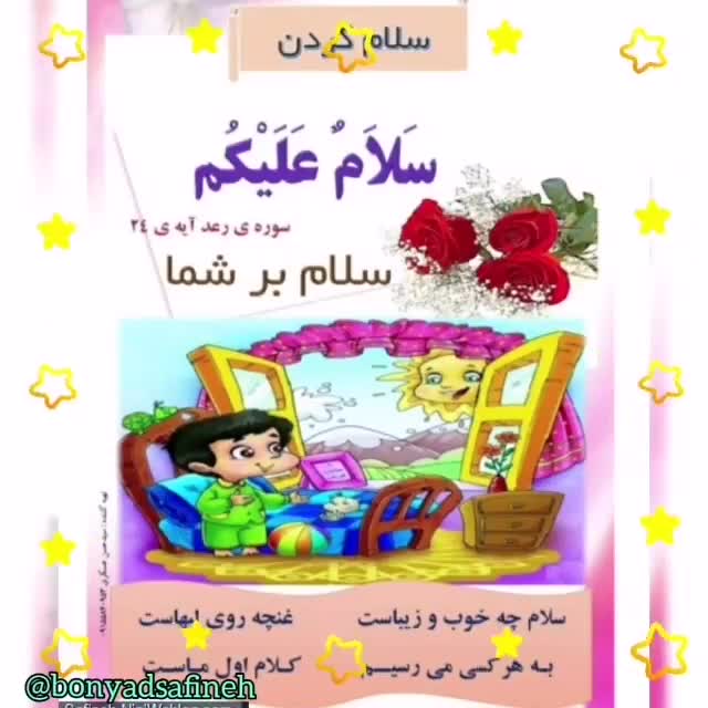 سلام به روی ماھتون اومدیم با یه پیام قرآنی زیبا، که این بار،دربارہ سلام کردن درخدمت شما، نوگل ھای قرآنی باشیم. سلام ،چه خوب وزیباست غنچه ی روی لب ھاست به ھر که روبروییم اول سلام می گوییم #قرآن_کتاب_آسمانی #کتاب_قرآن_کلاس_اول #انس_کودک_باقرآن #بنیاد_سفینه #bonyadsafineh @bonyadsafineh