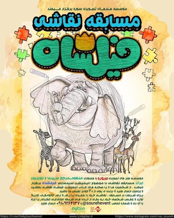 🎁.#فیلشاه#مسابقه موسسه هنرهای تصویری سوره با همکاری منظوم، مرجع سینما و تلویزیون ایران مسابقه نقاشی با موضوع انیمیشن سینمایی در رده سنی کودک و نوجوان فیلشاه برگزار میکند. از شخصیتها و یا صحنههای جذاب انیمیشن فیلشاه نقاشی بکشید و برامون ارسال کنید تا برنده یکی از 40 جوایز نفیس ما بشید. برای شرکت در مسابقه، نقاشی خود را همراه با نام و نام خانوادگی، تاریخ تولد و عکس شخصی خود به یکی از آیدیهای شبکه اجتماعی تلگرام یا بله با آیدی @sourehevent ویا شماره تماس 09109264137 ارسال کنید.مهلت ارسال فقط تا ۳۰ آآذر 🔸 🔸 🔸 @vac.soureh @manzoom_ir 🔸 #مسابقه#جایزه#فیلشاه#سینما#سینمایی#بازیگر##فیلم#سریال#تبلیغات#تیزر#ویدئو#ویدیو#بازیگر_سینمایی#بازیگری#ایرانی#خارجی#کلیپ#انیمیشن#ارز#دلار#هادی_محمدیان#فیلشاه#انیمیشن#کارتون#ایرانی#کودک#نوجوان