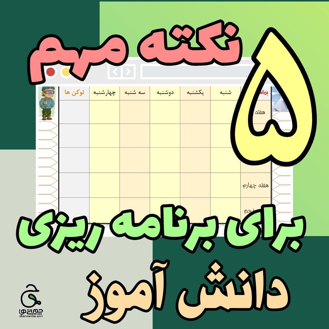 . معلم ها❗این ۵ تا نکته رو از دست ندید😎 این روزها که آموزش مجازی شده، خیلی از بچه ها هم چالش های جور واجور پیدا کردند، مثلا انگیزه و تمرکز کافی ندارند، از نوشتن تکالیف و خوندن درس فرار میکنند و همین ها سختی هایی رو برای معلم ها و والدین به همراه داره.😥 حالا دلیلش چیه؟ باید چیکار کرد؟؟؟🤔 . ✅ورق بزنید و بخونید⬆️ . ⭕این پست رو ذخیره کنید و برای معلم هایی که میشناسید بفرستید🤗 . ⁉️به نظر شما چه نکات دیگه ای برای برنامه ریزی بچه ها مهمه؟ برامون کامنت کنید. . #برنامه_ریزی_روزانه#برنامه_ریزی#برنامه #معلم_خلاق#دانش_آموز #مدرسه #درس #تکلیف#آموزش_پروژه_محور#آموزش_مجازی