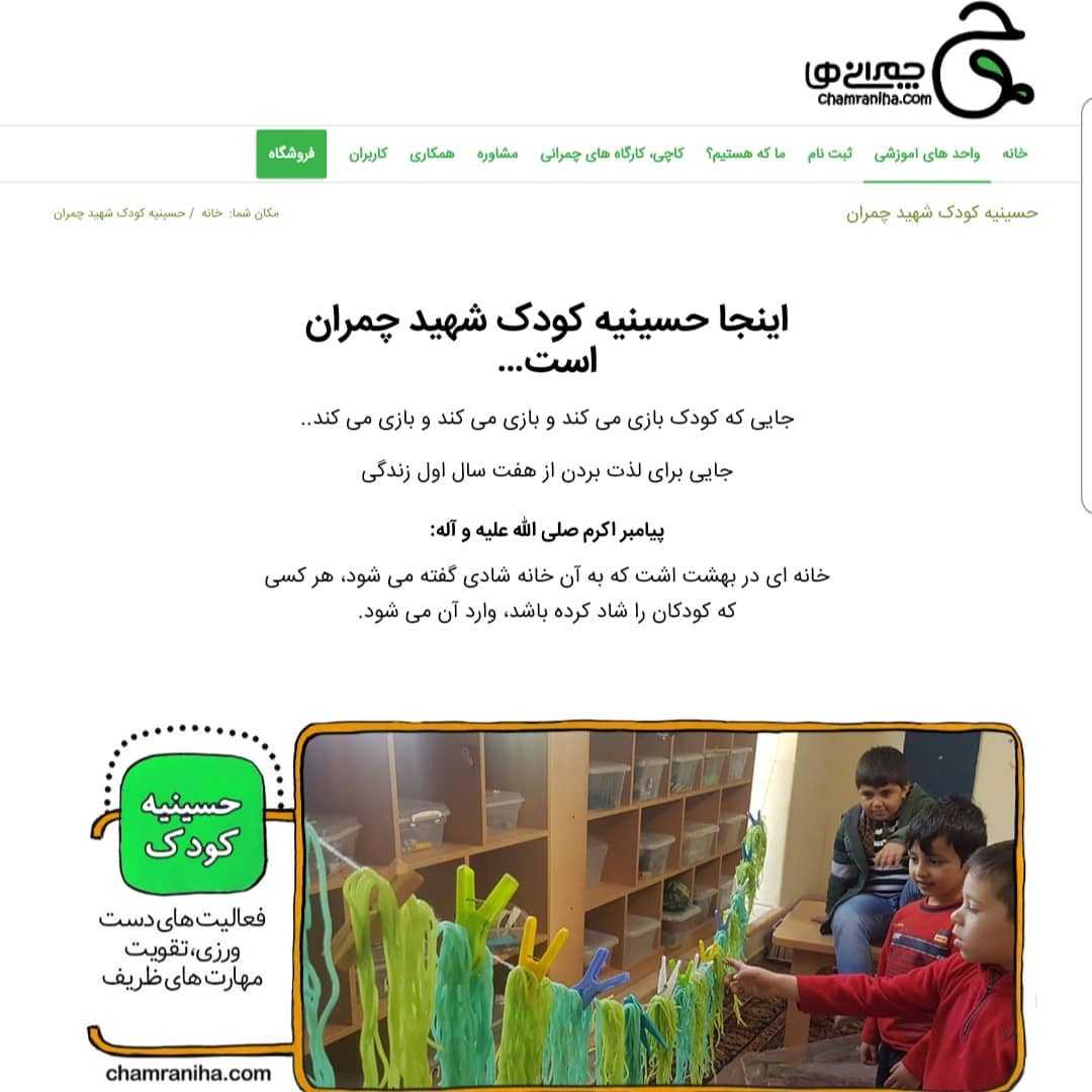 🔍 🔍 دوست دارید با بخش های مختلف سایت #چمرانی_ها آشنا بشین؟ 👧🏻👦🏻 حسینیه کودک شهید چمران 💡آشنایی با فعالیت های حسینیه کودک نمونه پروژه های انجام شده. اردوهای برگزار شده. 🔔 اگر مربی، مادر یا پدر هستید، می تونید کلی ایده بگیرید. ✅ فقط کافیه وارد سایت مون بشید و حسینیه کودک رو از بخش فهرست انتخاب کنید. chamraniha.com #سایت #معرفی #مهد_کودک #حسینیه_کودک_شهید_چمران #طرح_درس #ایده #اردو #کودک #مجتمع_آموزشی_شهید_چمران