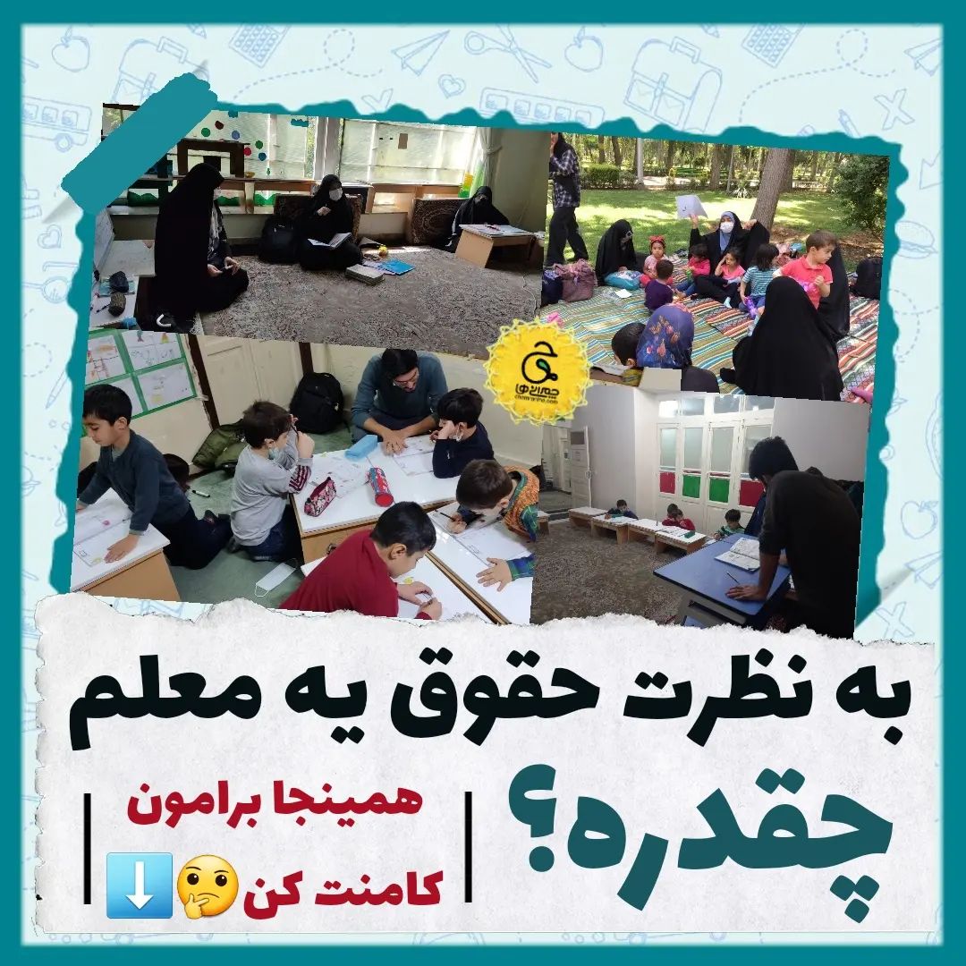 فکر میکنی حقوق یه معلم چقدره⁉️🤔 علما که سر این موضوع اختلاف دارند😁⬇️ . بعضی ها فکر میکنند معلم ها سرگنج نشستن و کلا وضع مالی قشر فرهنگی عالیه و بهشون خیلی خوش میگذره😎 . بعضی ها هم برعکس، معتقدن با توجه به زحمت و انرژی معلم ها، حقوقشون کمه و خیلی در حقشون اجحاف میشه... 🤕🙄🥴 . حالا شما برامون کامنت کنید ببینیم بالاخره حقوق معلم ها خوب و کافیه یا کمه و کفاف نمیده⁉️⬇️ . ✅برای معلم ها بفرستید که بهمون بگن حقوق معلمی چطوره😊😅 #معلم#معلم_ایرانی#حقوق_معلمان #فرهنگیان #معلم_خلاق #معلم_خوب #مدرسه#آموزش_و_پرورش #آموزش_کودک