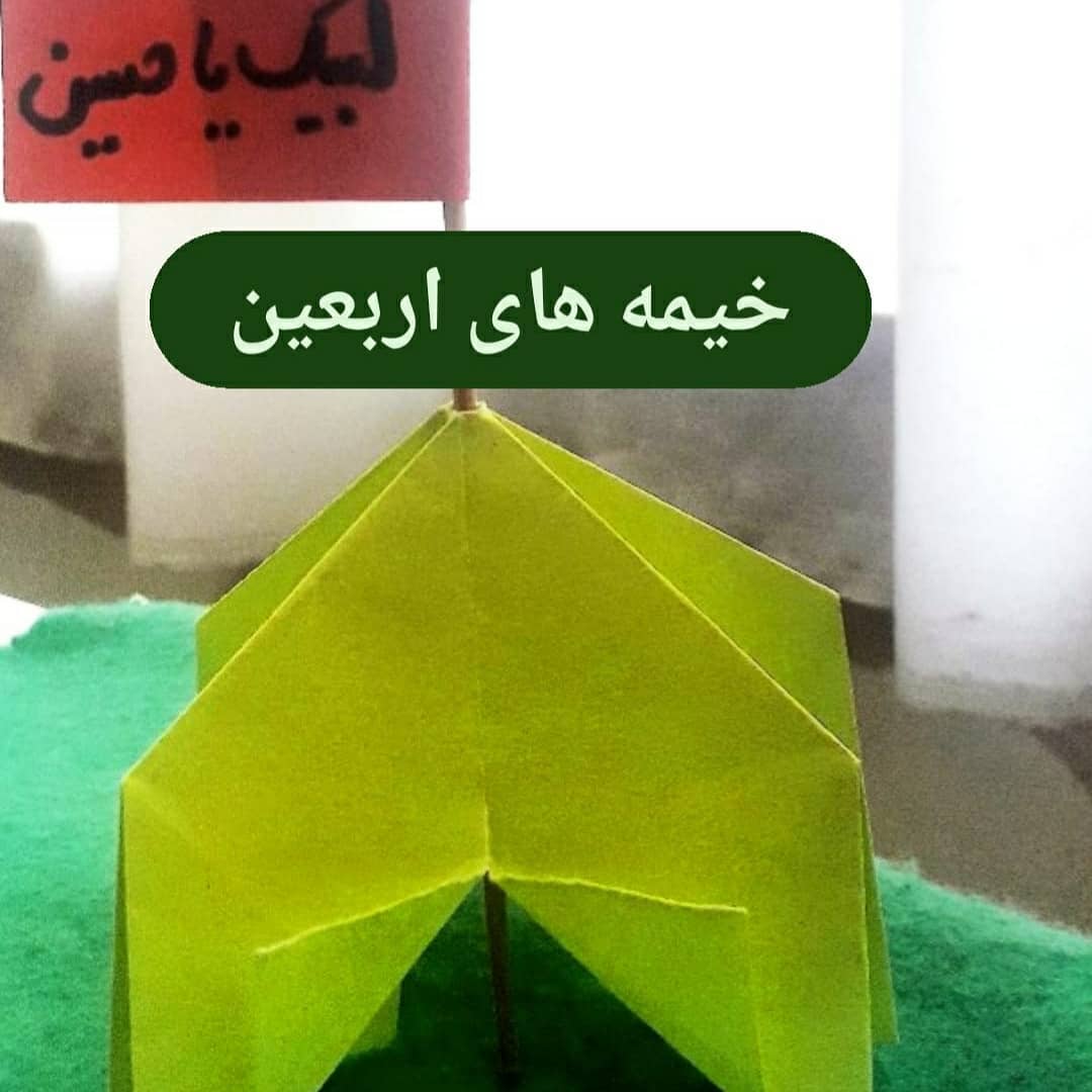 خیمه های اربعین . داریم کم کم به اربعین نزدیک میشیم. امسال که نمیتونیم به سفر اربعین بریم، میشه یه کارایی تو خونه هامون انجام بدیم. . مثلا خیمه درست کنیم. خیمه هایی که تو راه می دیدیم و توش استراحت می کردیم. . برای درست کردن یه خیمه ی کاغذی، کافیه فقط از روی عکس ها، کاغذرنگیمون رو تا بزنیم!👆 . میشه کلی از این خیمه ها درست کردو اون هارو رو یه مقوای بزرگ نصب کرد، اونطوری یه ماکت خیلی قشنگ داریم و خونه مون پر از خیمه های اباعبدلله میشه😊 . #اربعین_حسینی#خیمه#اباعبدلله #چمرانی_ها #اوریگامی#کودکان #ادبستان_دخترانه_شهید_چمران #مجموعه_شهید_چمران