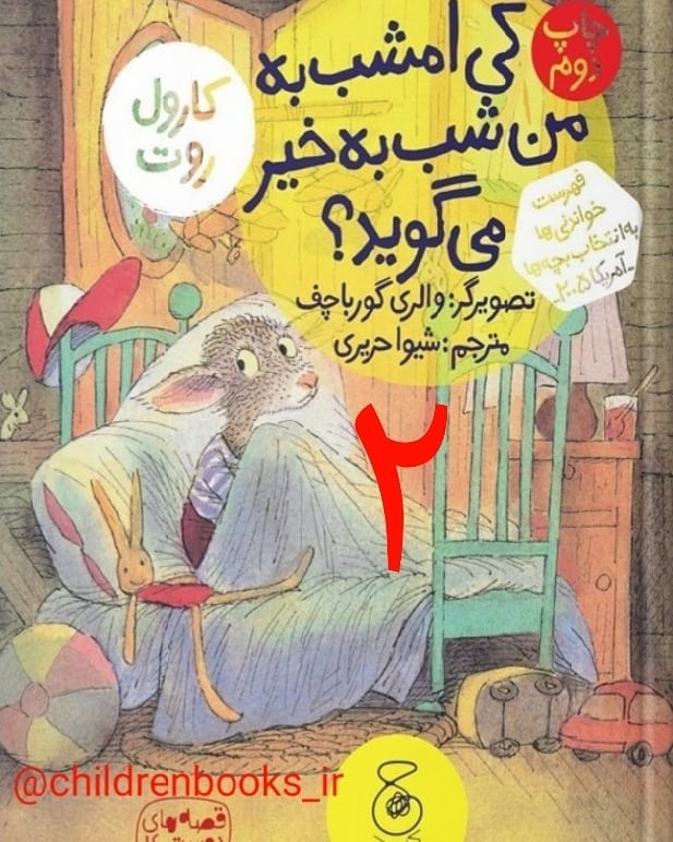 کتاب" کی امشب به من شب بخیر میگوید؟" نشر چشمه @ketabeche نویسنده : کارول روت تصویرگر: والری گورباچف برای گروه سنی ب و ج ادامه در پست بعدی... . . #ب_چیلدرن_بوکز #ج_چیلدرن_بوکز #کتابخوانی #کتاب #کودک #کودکانه #قصه_کودک #قصه #داستان