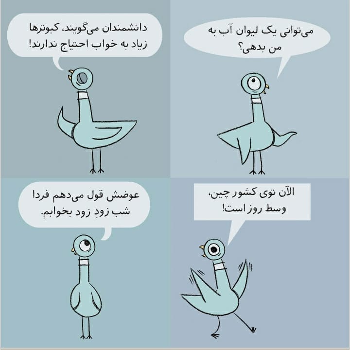 پارت سوم کتاب" نگذار کبوتر تا دیروقت بیدار بماند" نویسنده و تصویرگر: مو ویلمز انتشارات کانون پرورش فکری کودکان و نوجوانان برای گروه سنی الف . . #الف_چیلدرن_بوکز #کانون_پرورش_فکری_کودکان_و_نوجوانان #کتابکودک