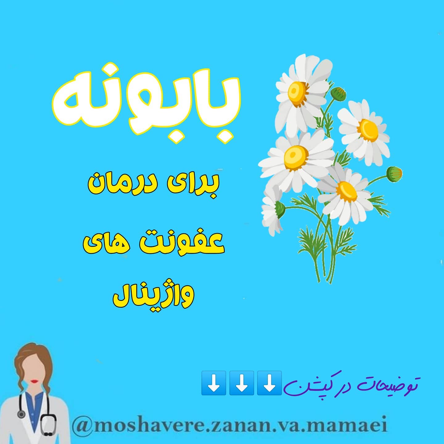 دیروز توی پرسش و پاسخ ها متوجه شدم از دوش های واژینال اشتباهی استفاده می کنید. و اینقدر تو معاینه مریض ها دیدم که چیزای عجق وجق تو این واژن بدبخت گذاشتن که کلا توصیه می کردم هیچ چیزی جز کرم و پماد های واژینالی که براتون تجویز میشه استفاده نکنید! اما این مورد خاص رو نمیشه منکر شد! من معتقدم بابونه رو خداوند برای درمان درد های بشر آفریده، اینقدر که این گیاه خوبه😌 خودم همیشه تو خونه دارم و تنها چیزیه که نمیذارم هیچ وقت تموم شه! ☑️ خب حالا برای درمان عفونتهای واژینال چطوری استفاده کنیم؟ ⬇️⬇️⬇️ یه کتری متوسط رو به کوچولو پر از آب کنید بذارید جوش بیاد، یه قاشق غذاخوری سر پر بابونه رو توش بریزید، شعله رو خاموش کنید و بذارید دم بکشه، بعد از بیست دقیقه آماده ست. حالا از صافی ریز ردش کنید، هیچ تفاله ای نداشته باشه، توی یه تشت تمیز آب بریزید، آب ولرم به اون اندازه بهش اضافه کنید که بشه توش نشست. بعد از ربع ساعت بلند شید. این کارو یک هفته هر روز انجام بدید. یک روش فوقالعاده برای درمان عفونتهای قارچی و باکتریایی و کاهش التهاب واژن و دهانه رحم هست. . . . و این یکی بود از صد خاصیت بابونه😌 امیدوارم انجام بدید و نتیجه دلخواه رو بگیرید، اگرم تا حالا تجربش رو داشتید حتما برام بفرستید. . . . . # عفونت #عفونت_واژینال #بابونه #عفونت_قارچی #عفونت_راجعه #عفونت_باکتریایی #ویزیت_آنلاین #درمان_عفونت_واژینال