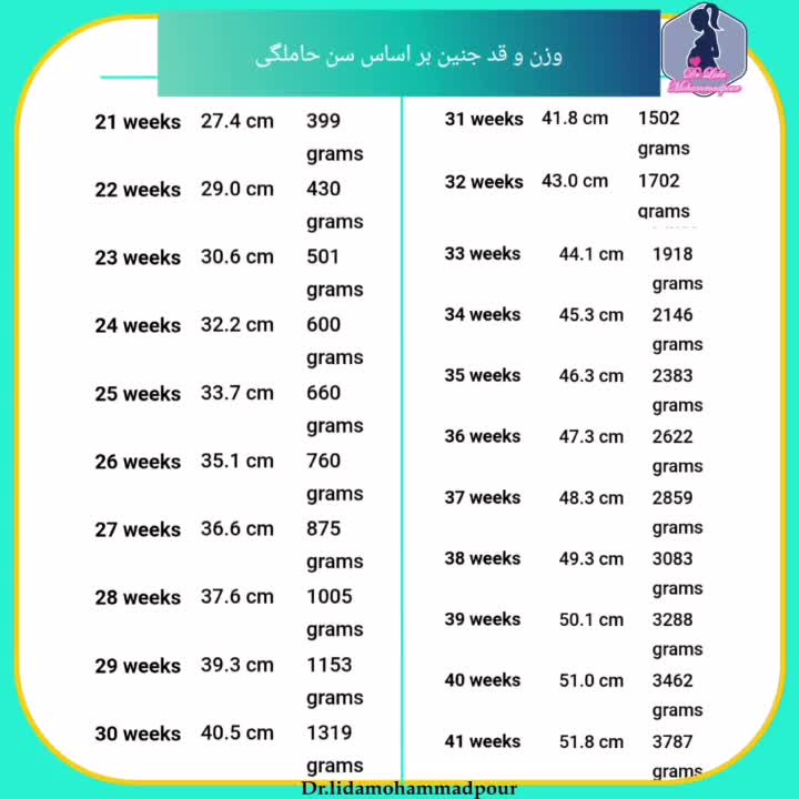 . #وزن_و_قد_جنین بر اساس سن حاملگی #وزن_جنین_هفته_به_هفته #وزن_جنین_در_هفته_های_مختلف_بارداری #دکتر_لیدا_محمدپور #جراح_متخصص_زنان_زايمان_نازايى #بیمارستان_امام_خمینی_خوی #مراقبت_های_بارداری